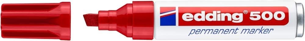 edding 500 Permanent Marker - Red - 1 Pen - Chisel Tip 2-7 mm - Waterproof, Quic