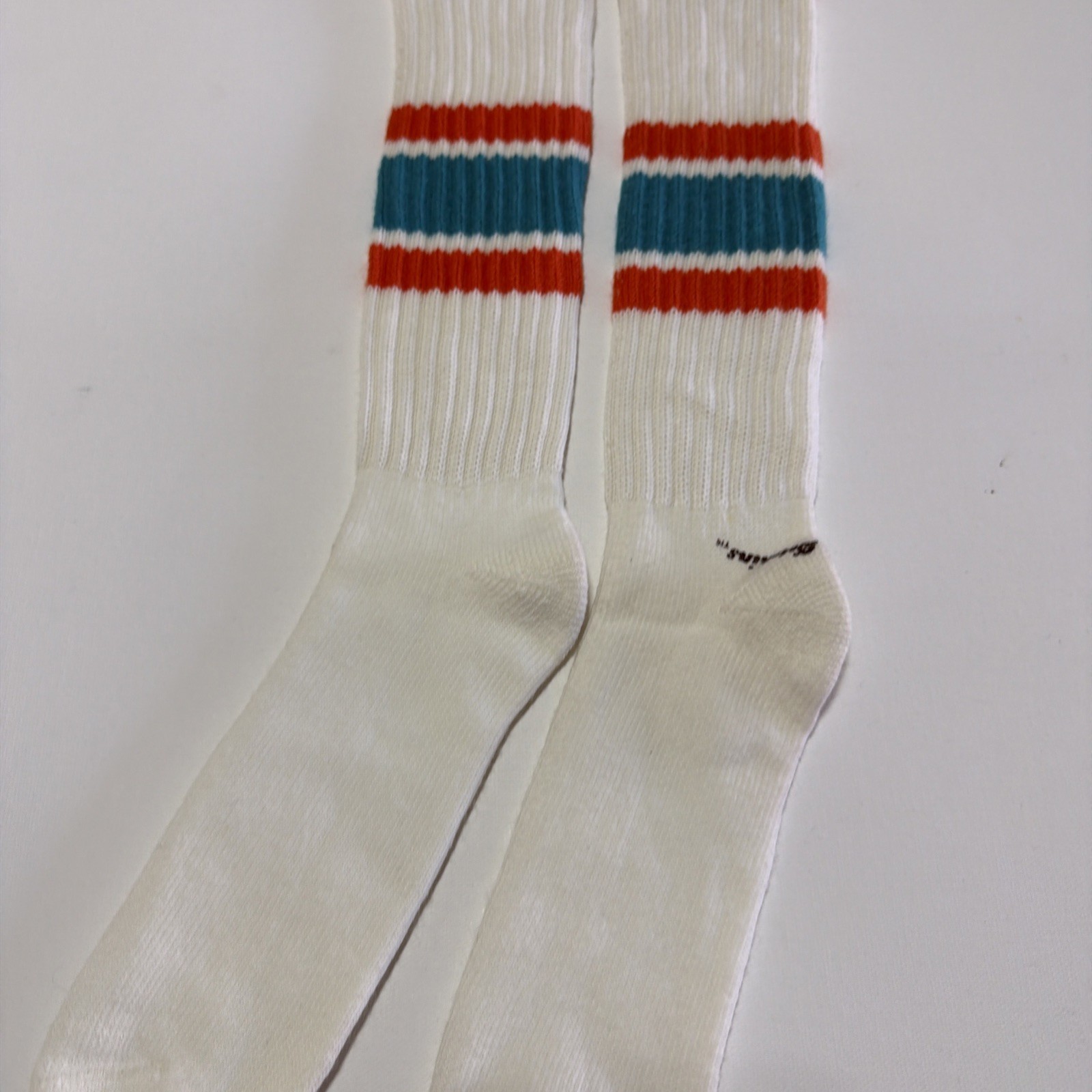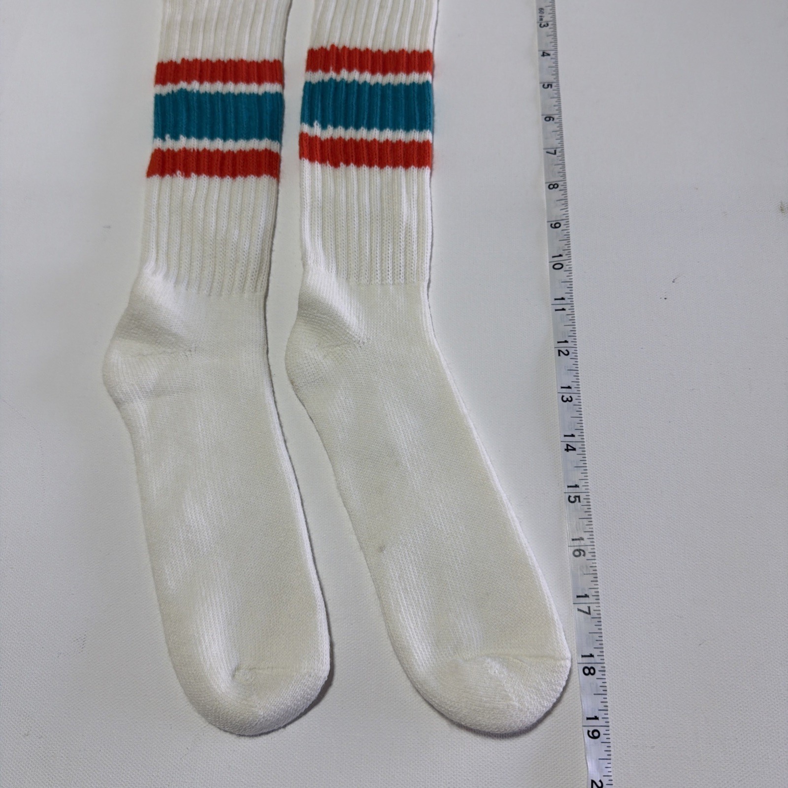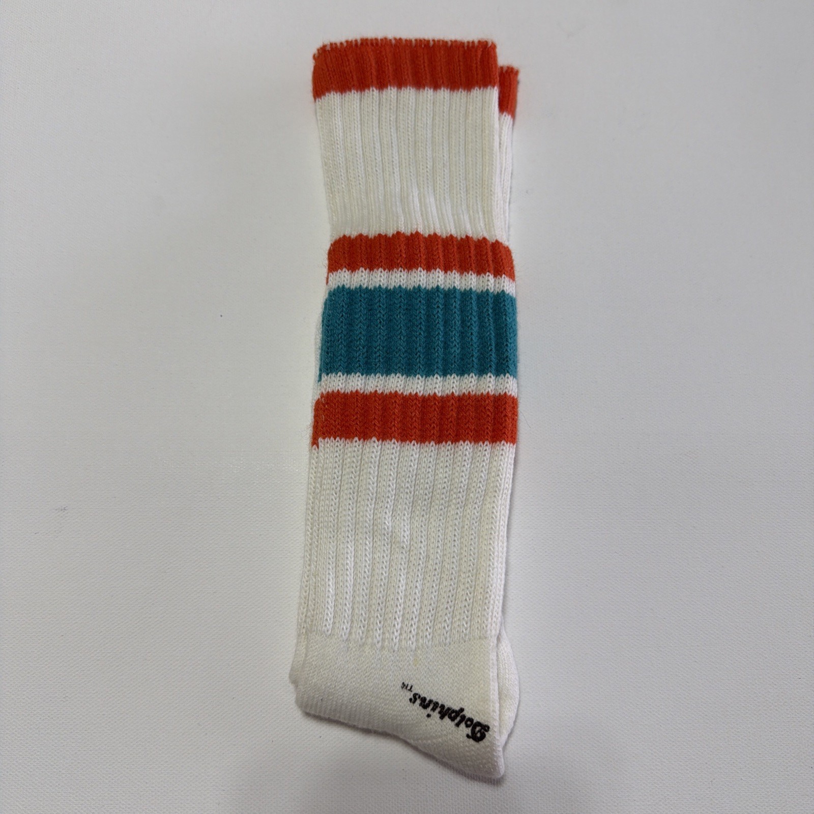 Men's 1980s Vtg Miami Dolphins NFL Socks Football 90s 9-11 Mid Calf Crew Striped