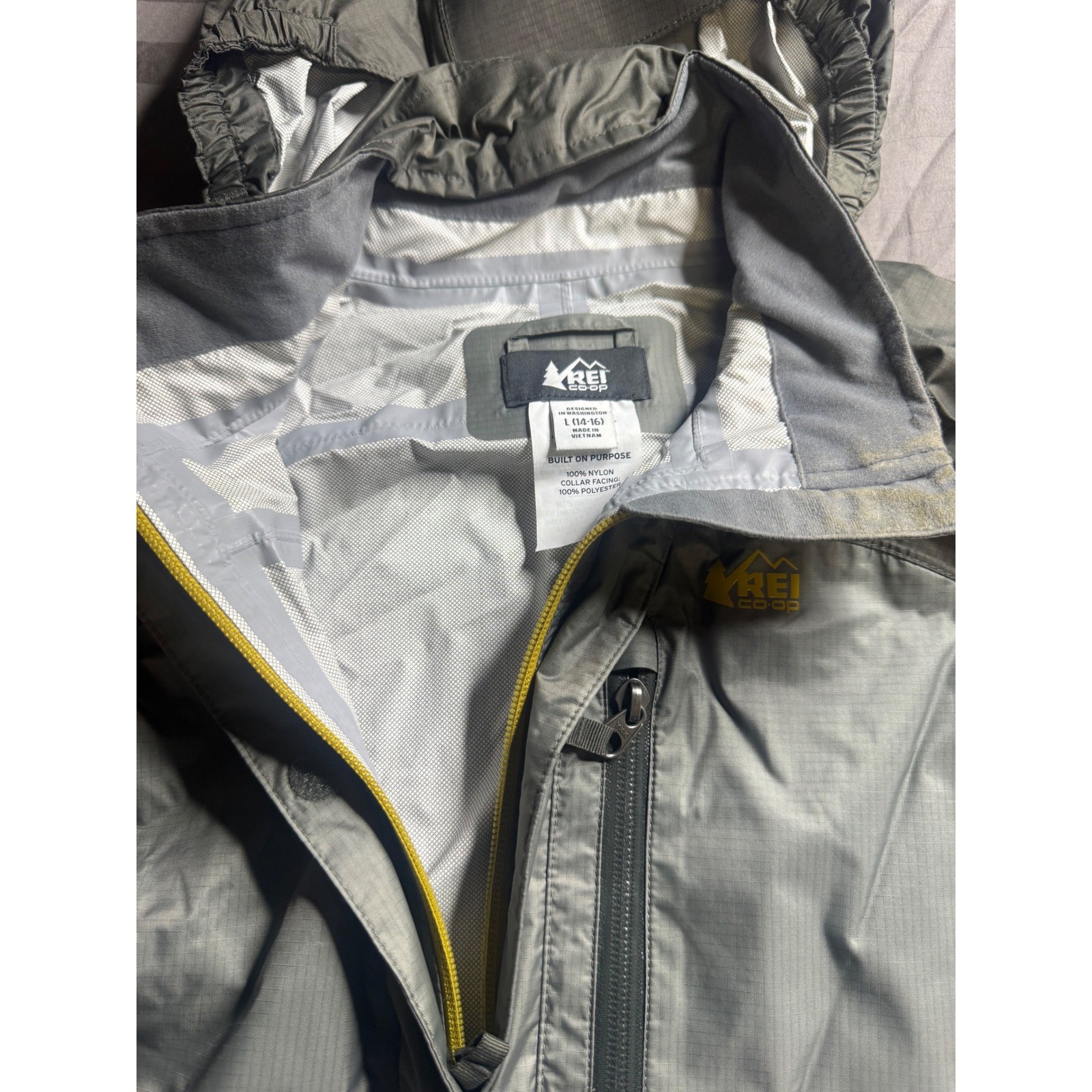 как выглядит REI Co-op Kids Grey Rain Jacket Hooded Waterproof Shell Size L 14-16 фото
