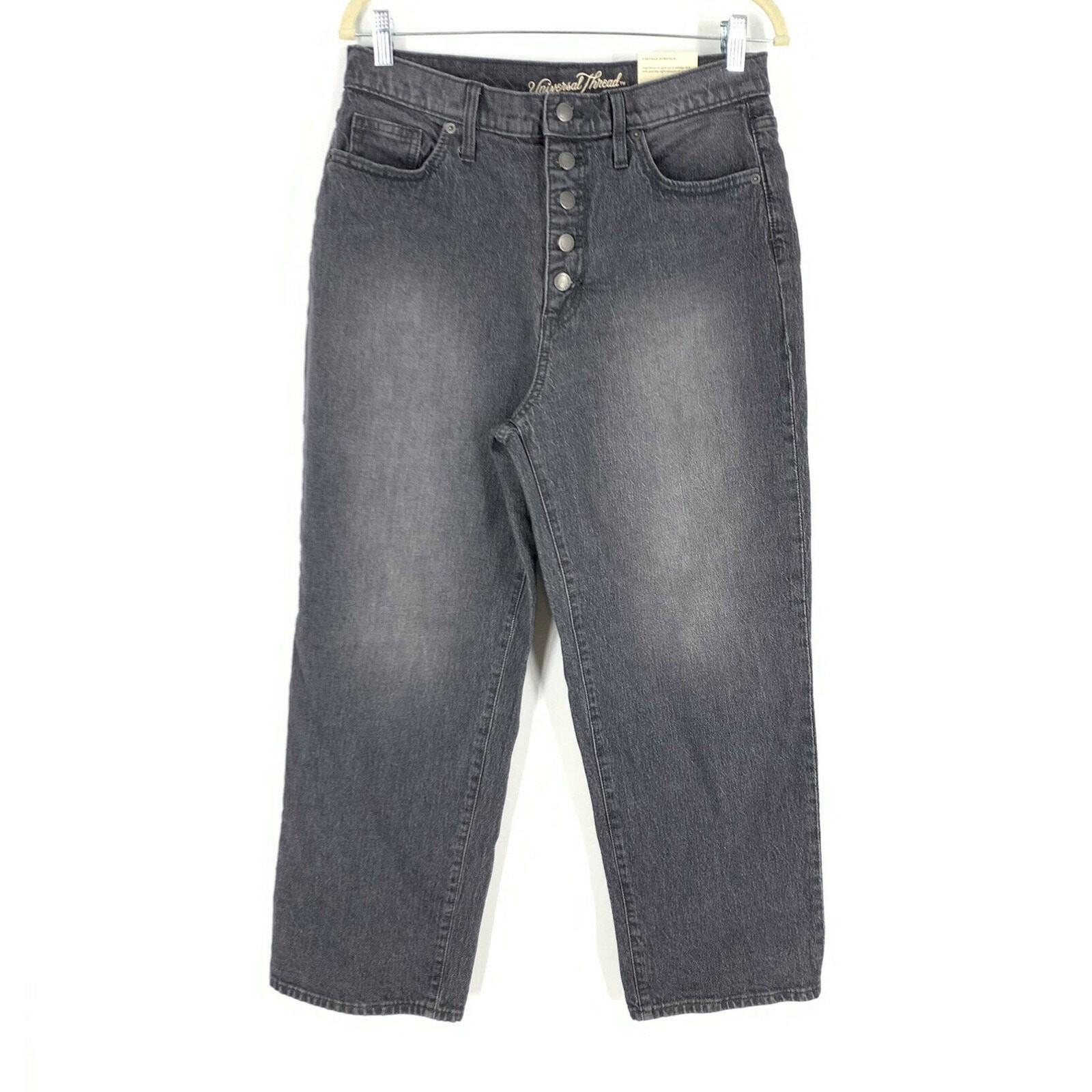 как выглядит Universal Thread Size 10 High-Rise Vintage Straight Cropped Jeans Charcoal Wash фото