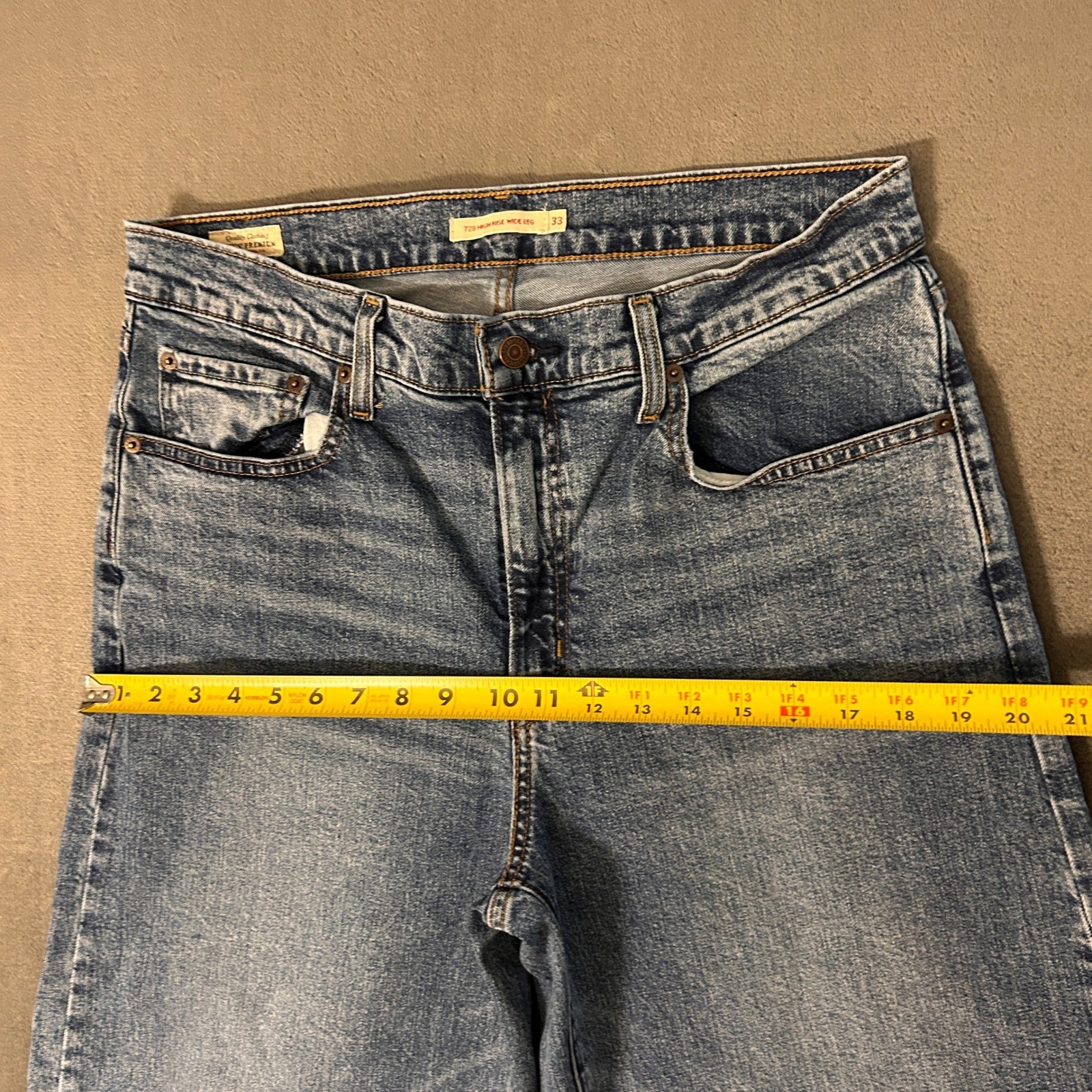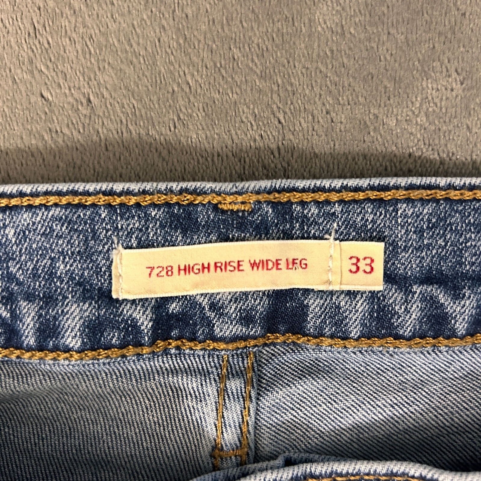как выглядит Levis 728 High Rise Wide Leg Jeans Womens 33x27 Blue Denim Raw Hem Medium Wash фото