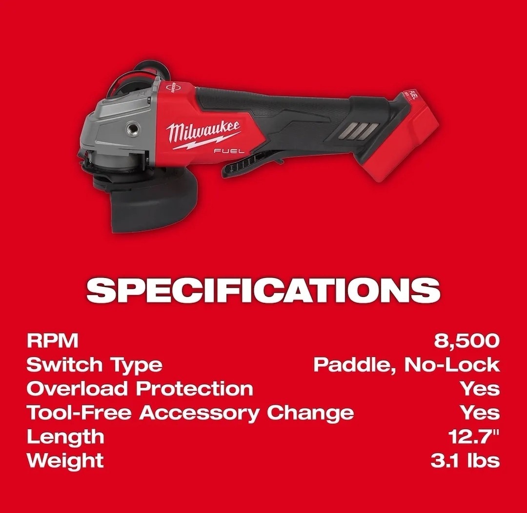 Milwaukee M18 FUEL 4 1/2 / 5 18V Cordless Angle Grinder, No-Lock - 2880-20