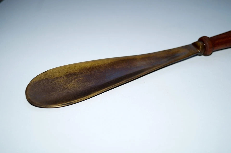 как выглядит Antique Reproduction Shoe Horn Solid Brass Wooden Handle Vintage Nautical Style фото