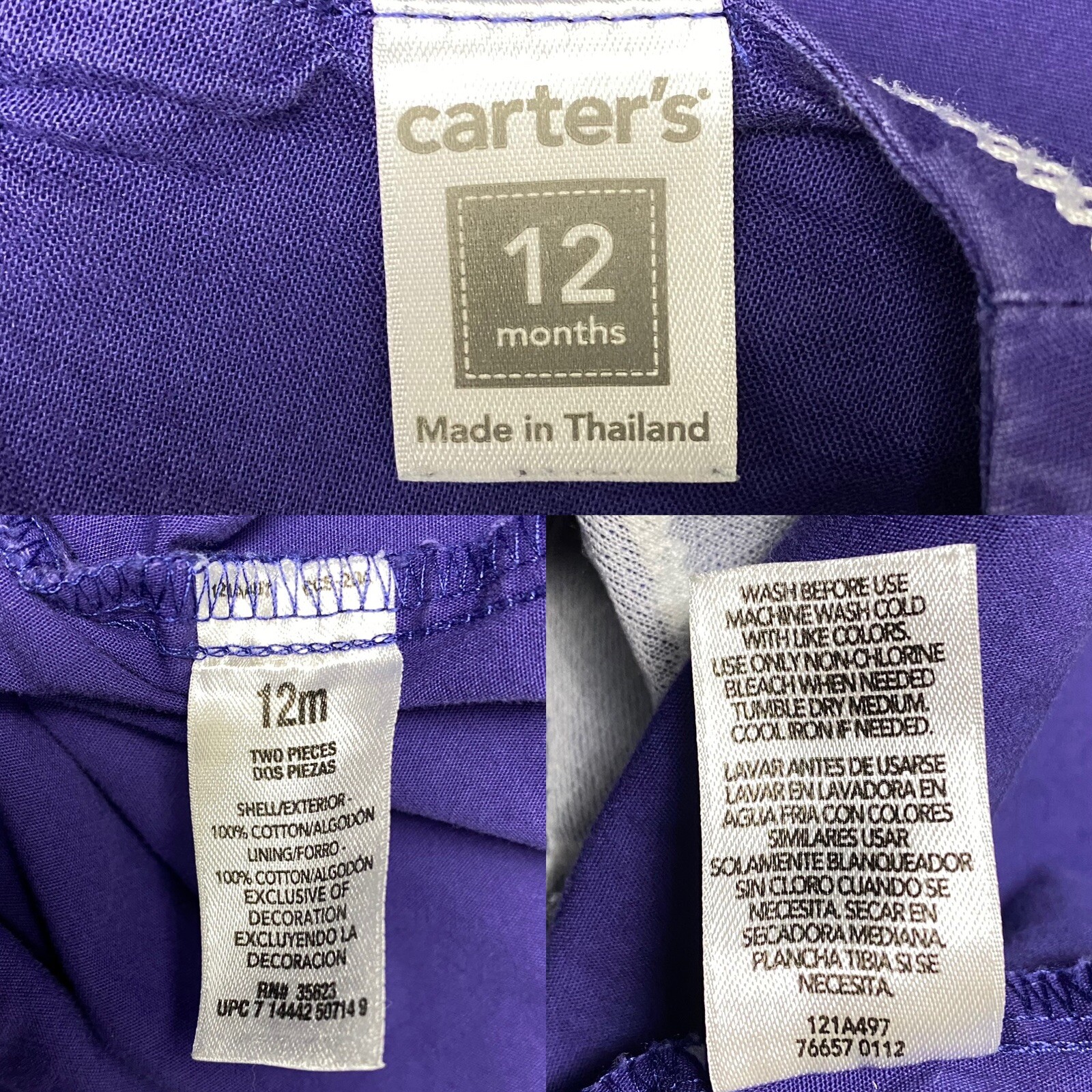 как выглядит Carters Sweet Treats Baby Girl Dresses Lot of 2 12M Purple Blue Pink Embroidered фото