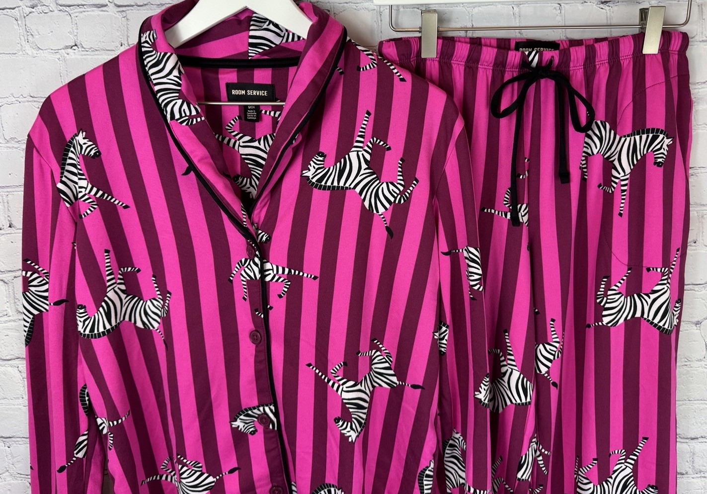 ROOM SERVICE Women's Zebra Pink Striped Pajama Set Size Small