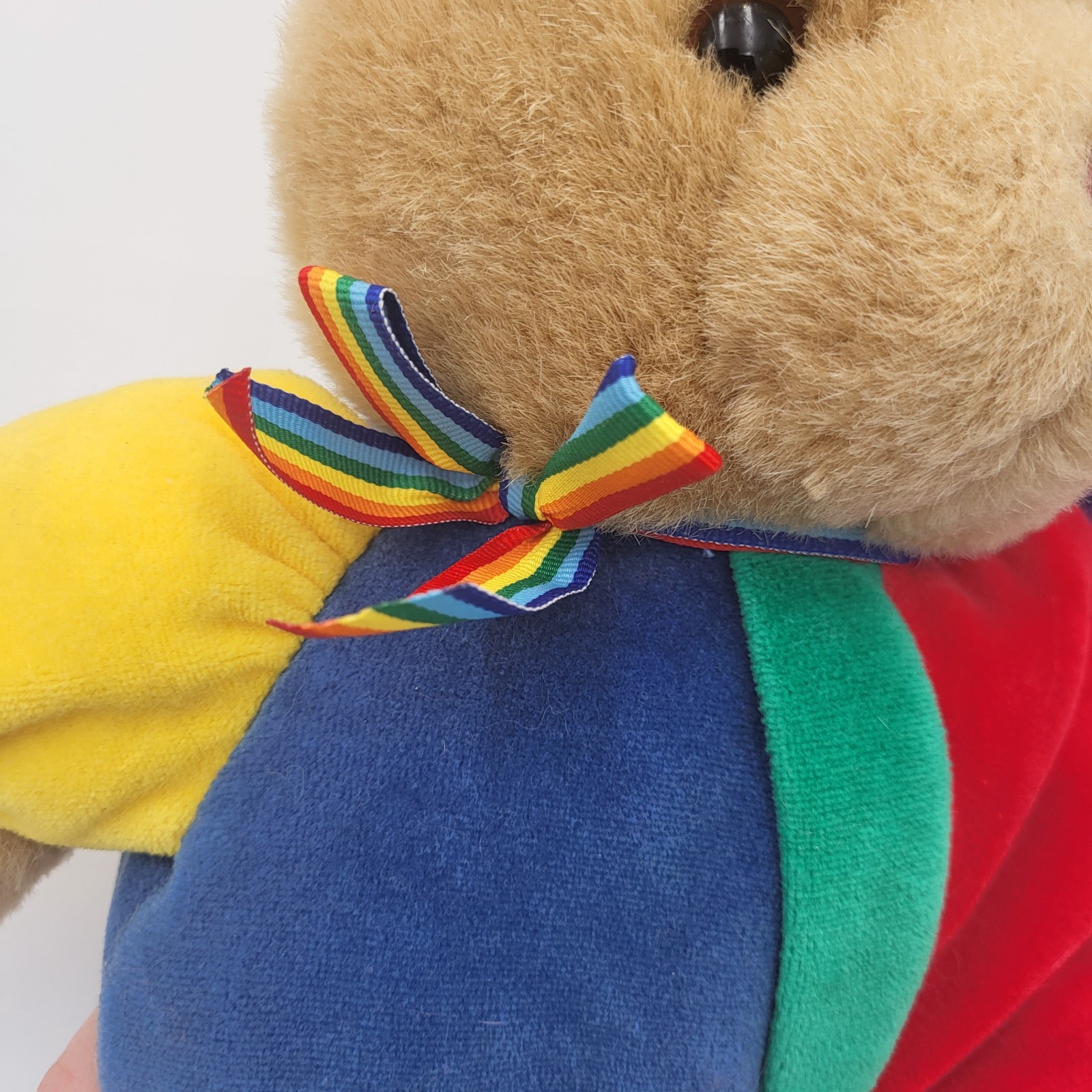 как выглядит Vintage Eden Teddy Bear Plush Velour Primary Colors Rainbow Bow 13 Toy CUT TAG фото