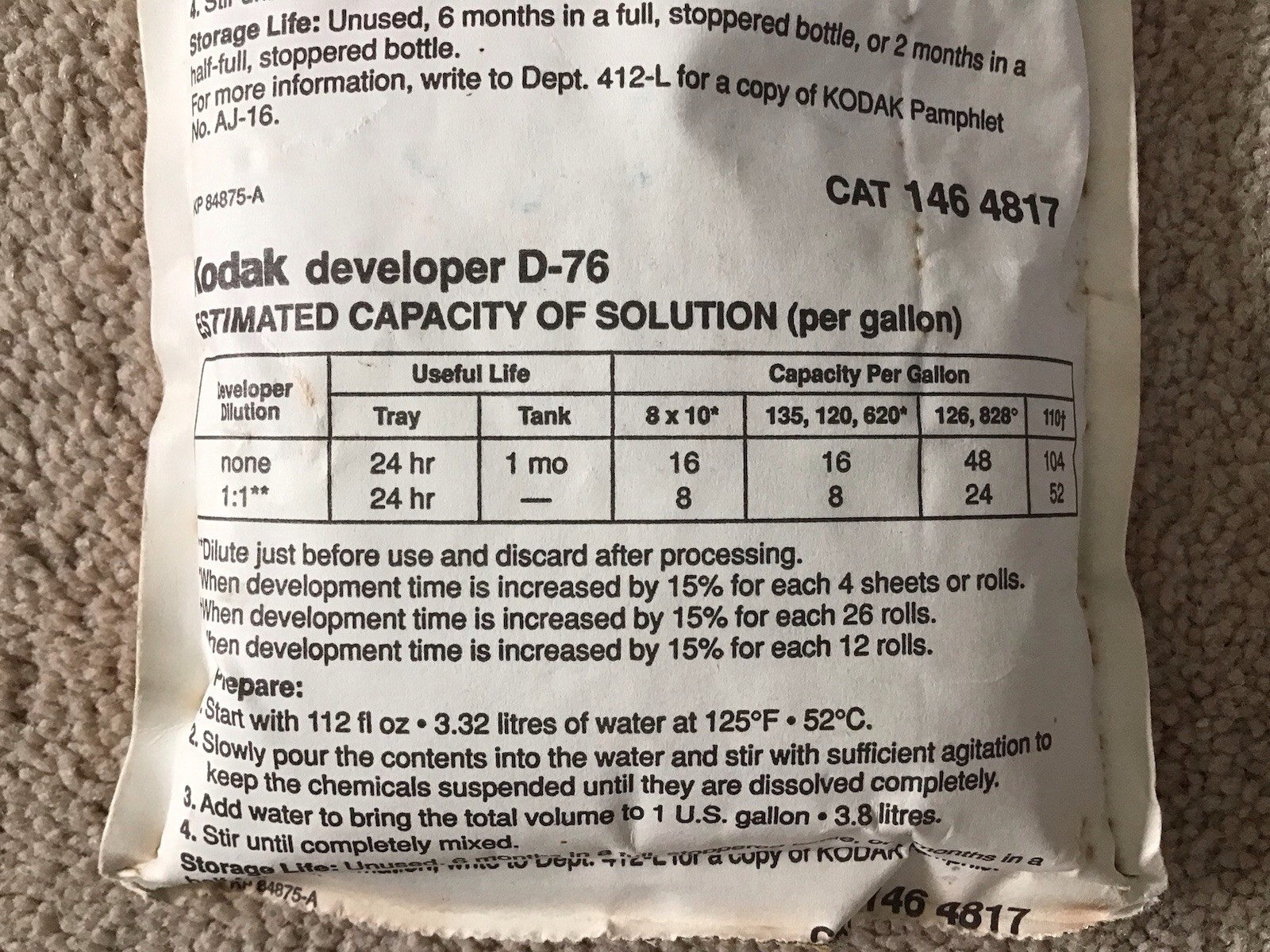как выглядит Kodak Developer D-76 to Make 1 Gallon CAT 146 4817 NEW IN UNOPENED BAG фото