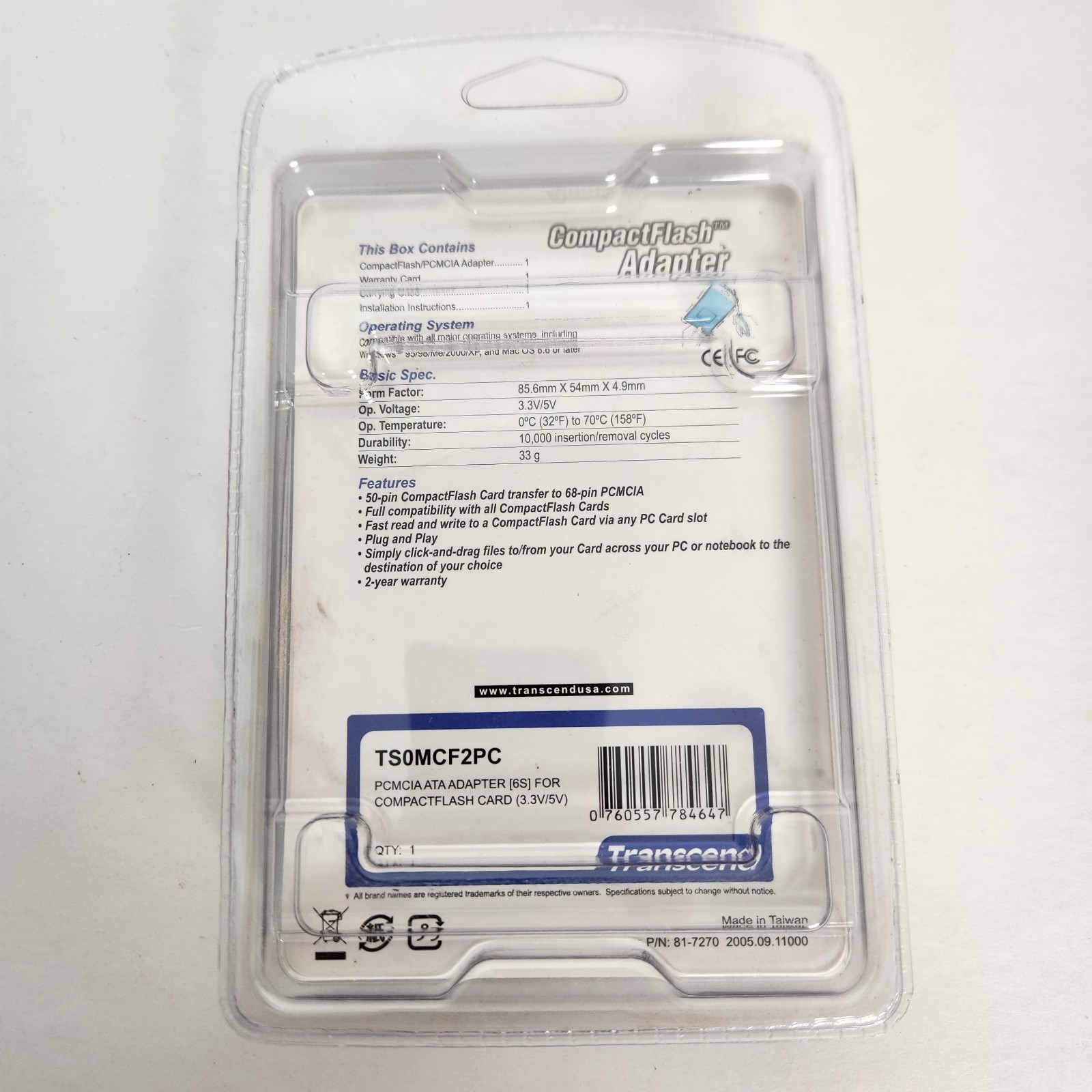 как выглядит TRANSCEND Compact Flash Adapter TS0MCF2PC PCMCIA ATA Adapter for Card New Sealed фото