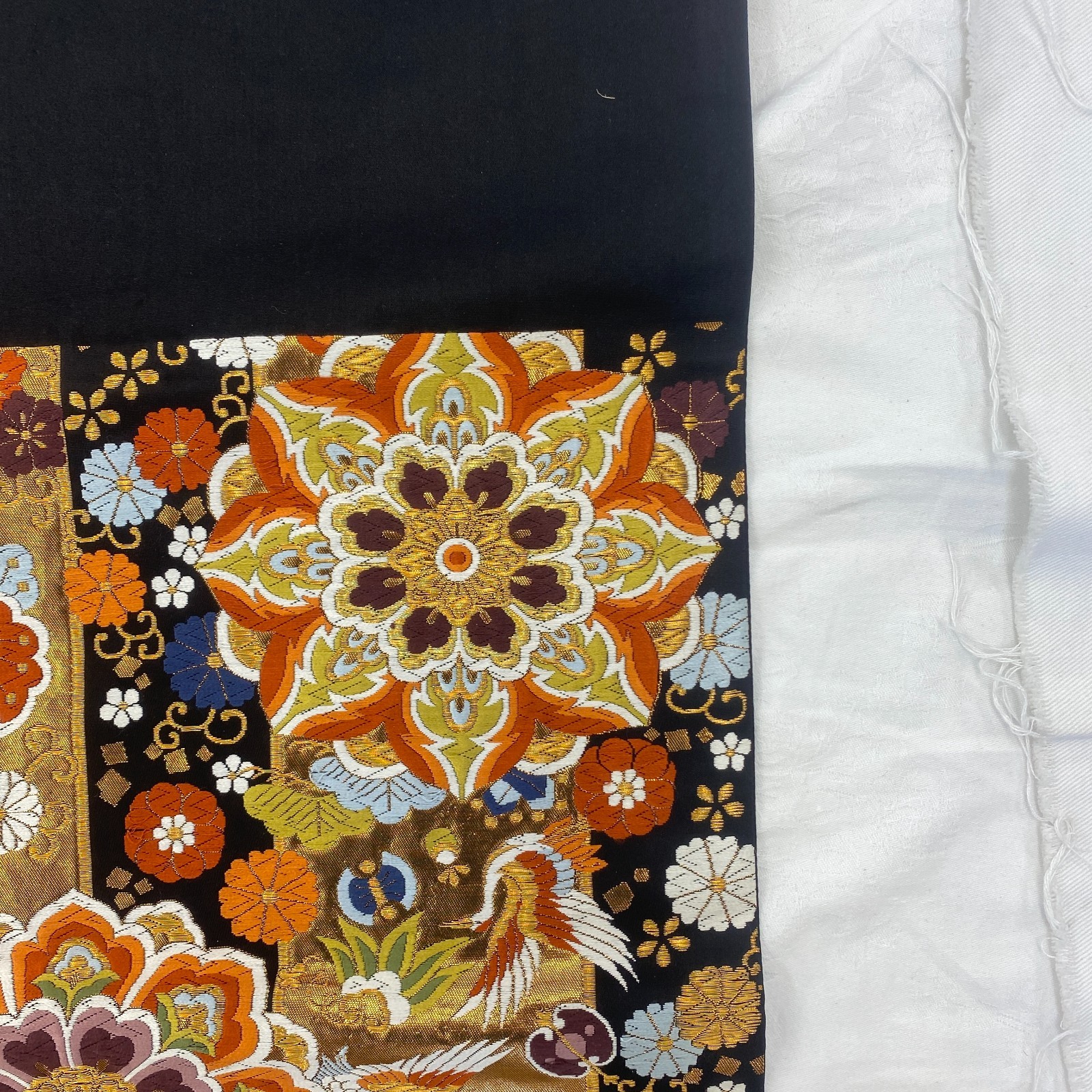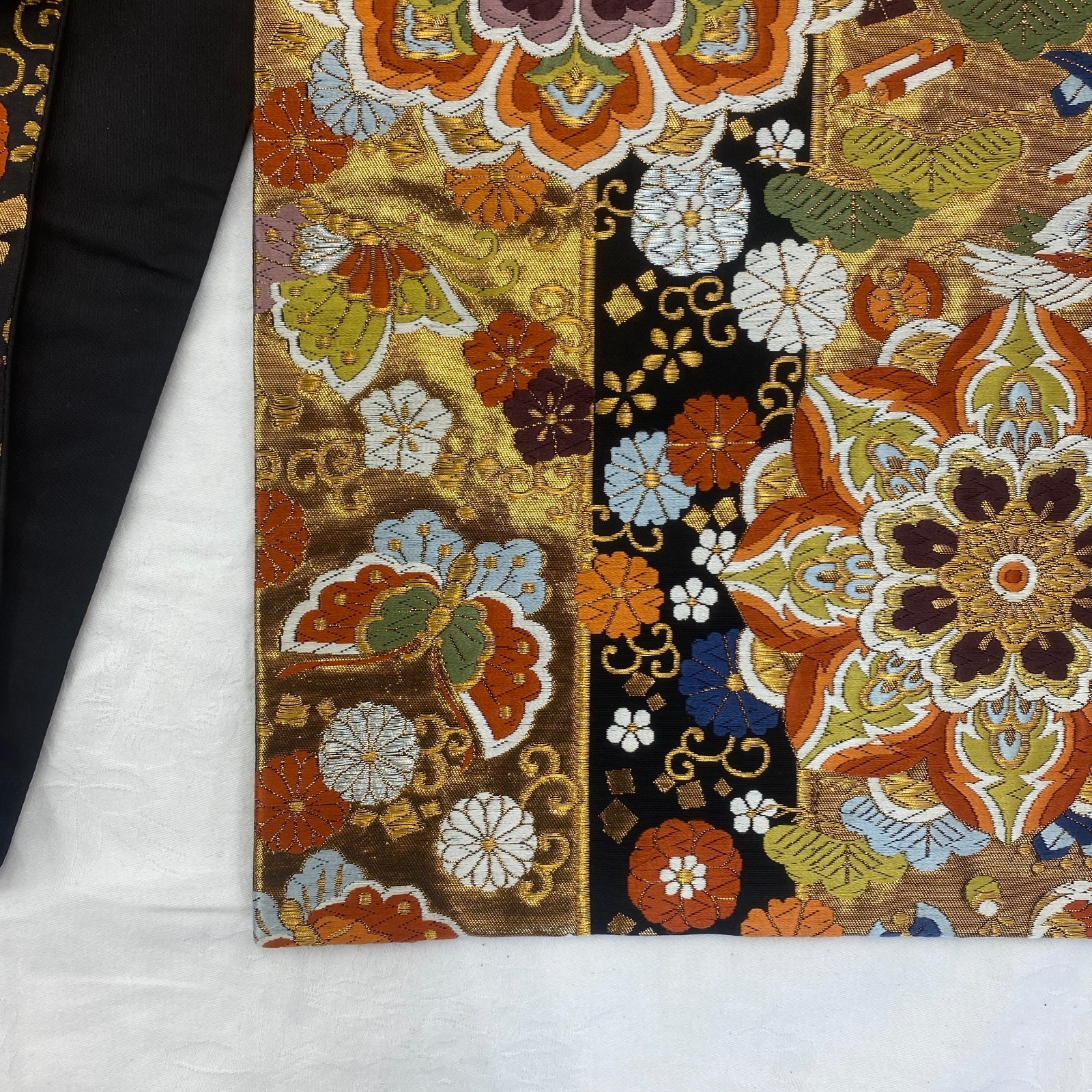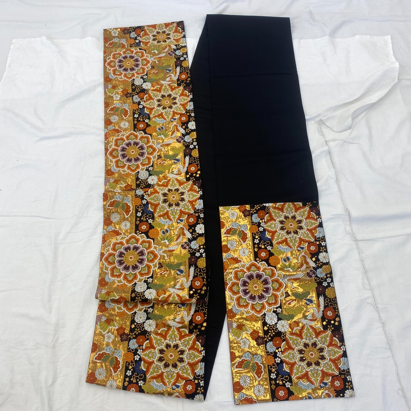 как выглядит Japanese Vintage Kimono Fukuro Obi Silk Black Traditional Authentic 167 x 12 in фото