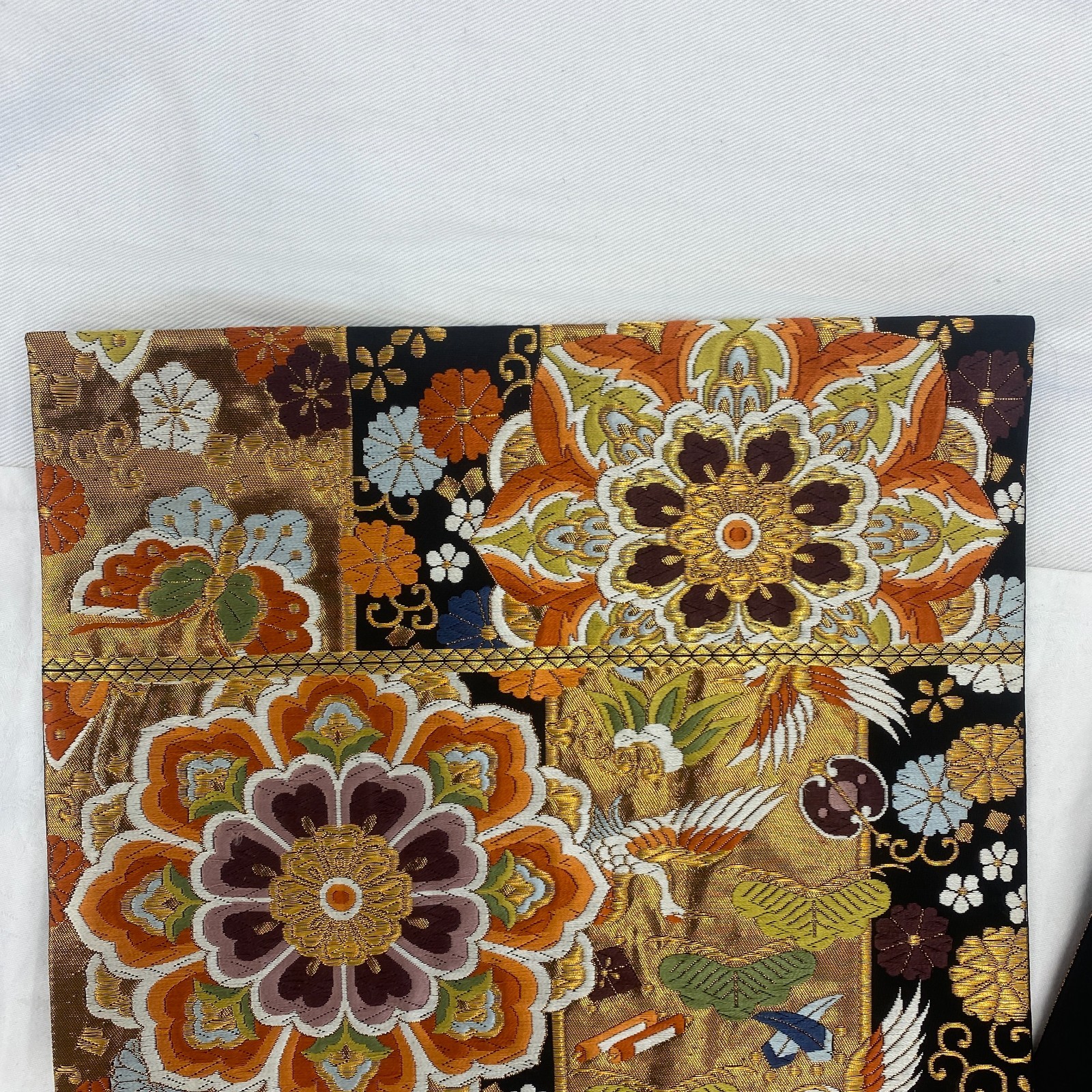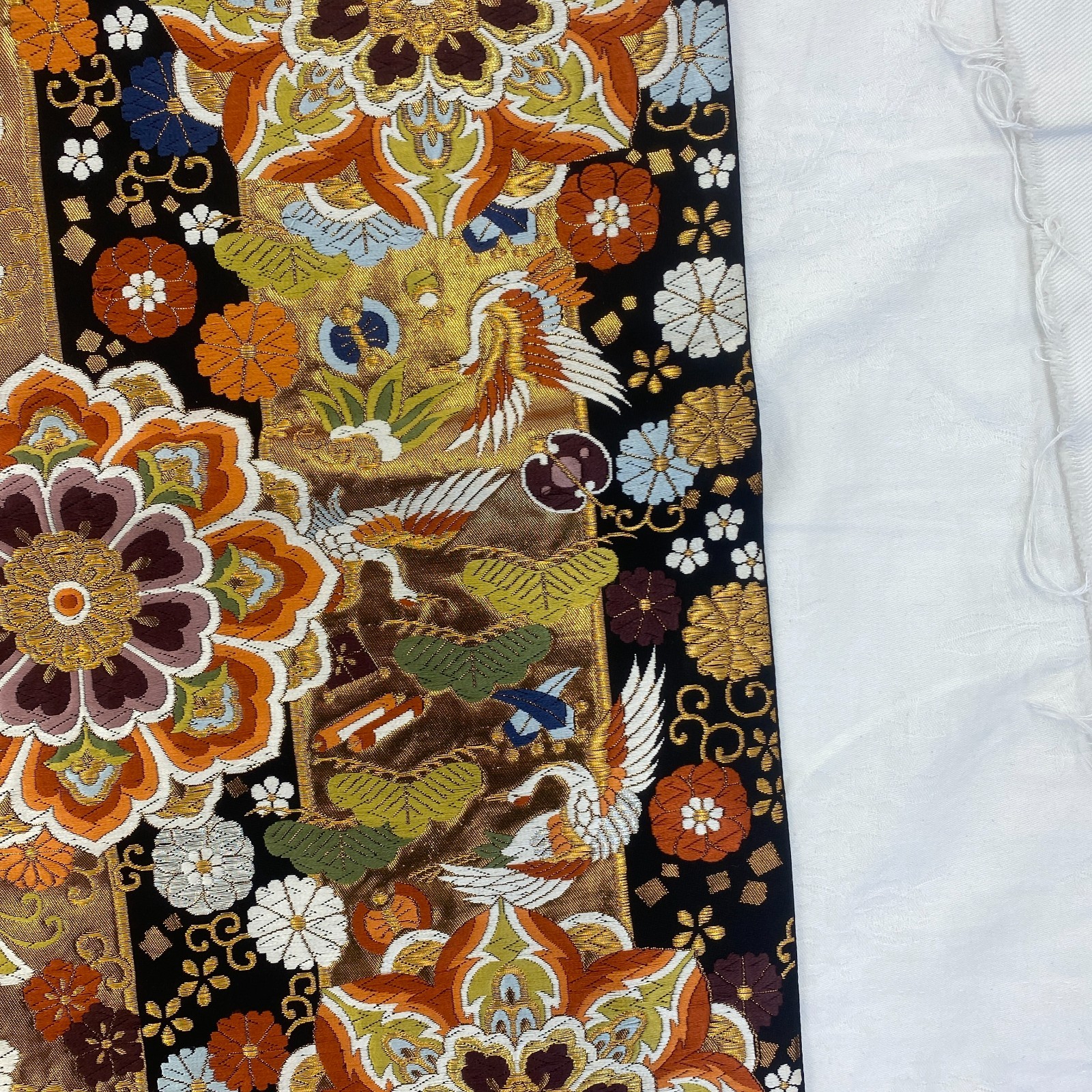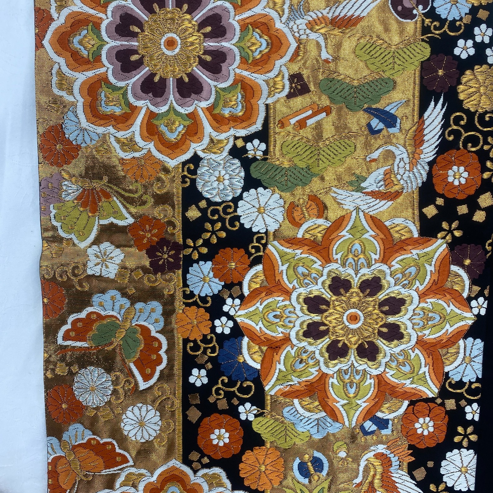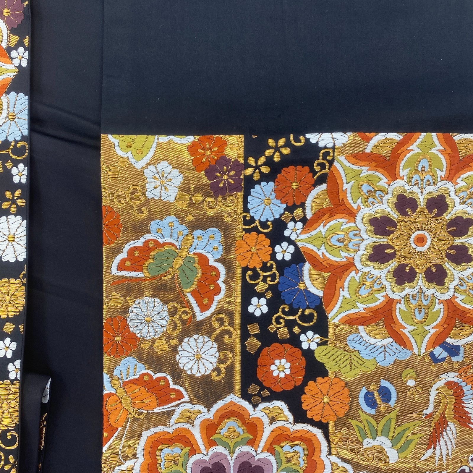 как выглядит Japanese Vintage Kimono Fukuro Obi Silk Black Traditional Authentic 167 x 12 in фото