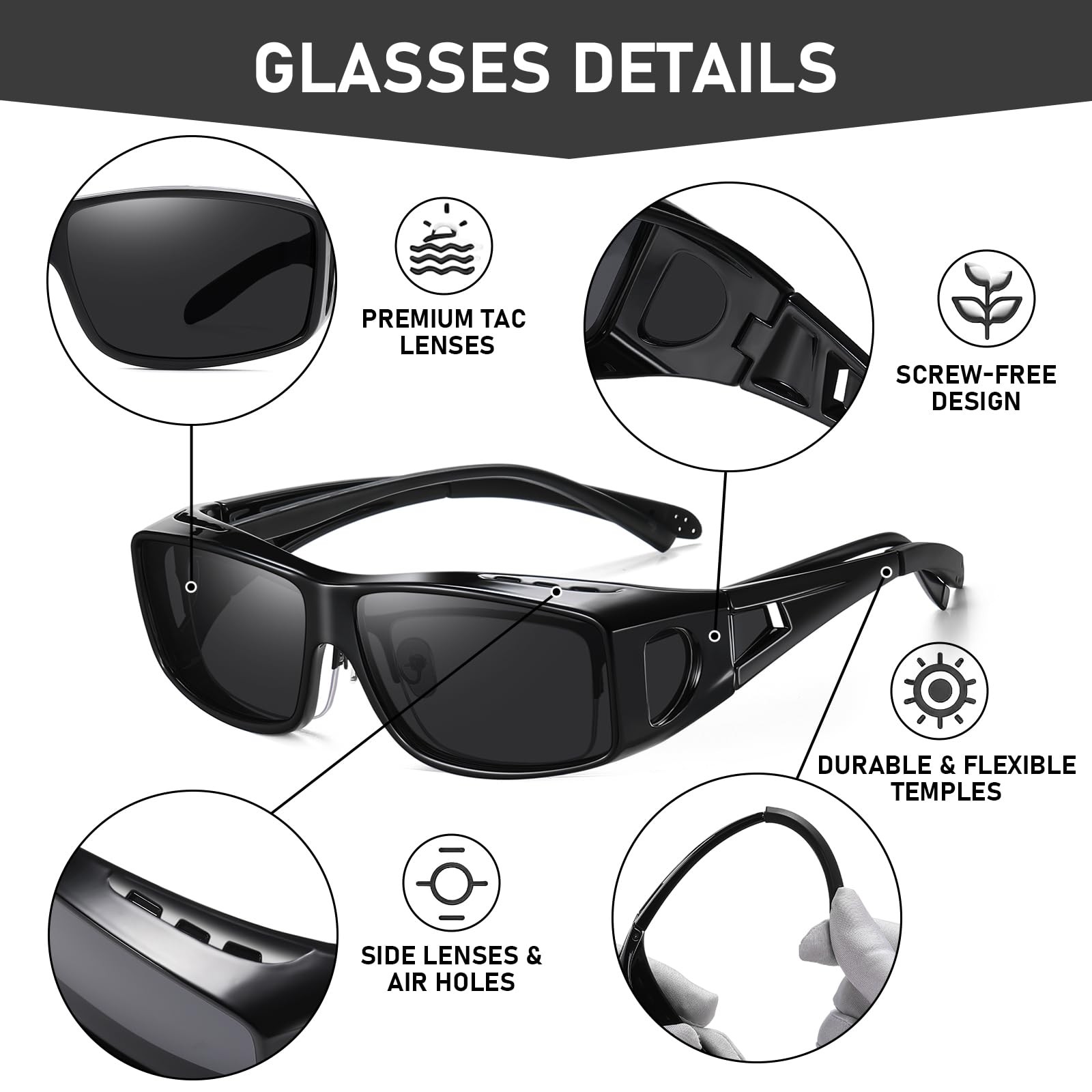 Polarized Sunglasses Fit Over Glasses, UV Protection Wrap-Around for Men Wome