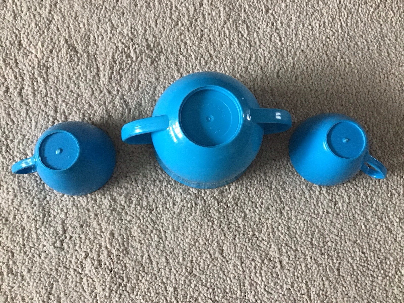 1980 The First Years Children's 14-Piece Small Plastic Blue Floral Dishes Set