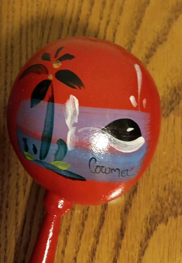 как выглядит 2 Vintage Hand Painted Mexican Maracas Gourd Shaker Music Cozumel 9  Blue Red фото