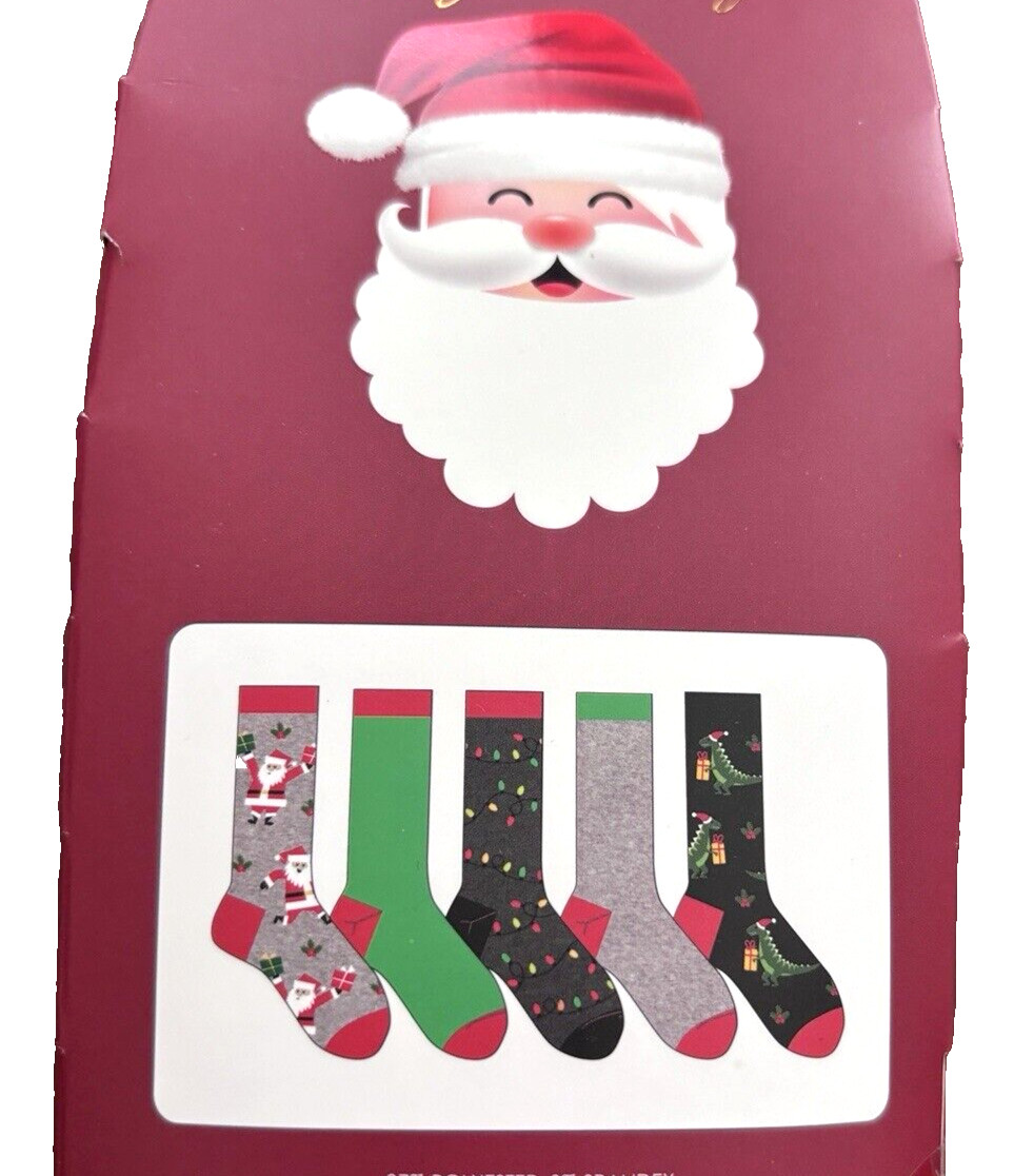 Happy Holidays Christmas Novelty Socks 5 Pairs Size 10-13 Shoe Size 6-12 NEW
