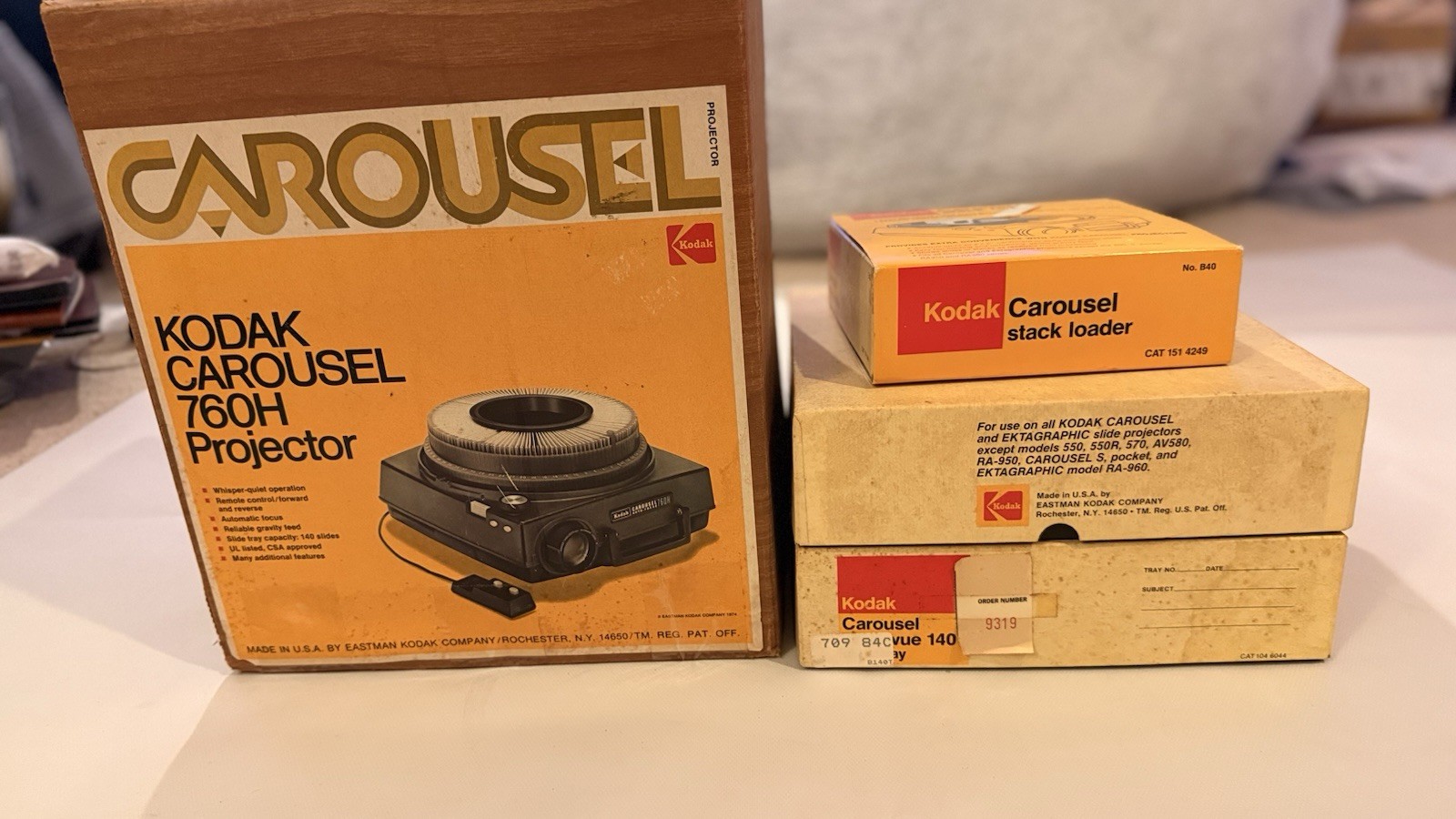 Kodak Carousel 760H Projector Tested working with Remote, Tray, Box Manual