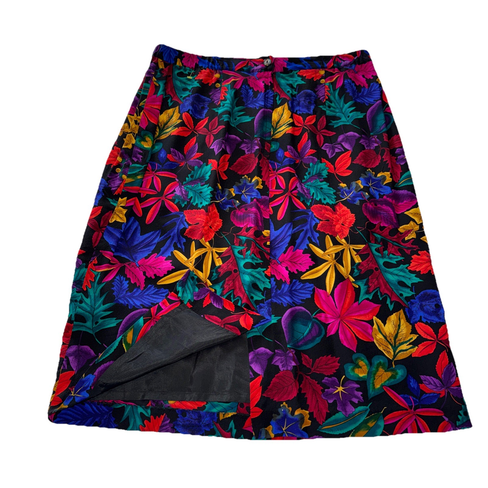 Silk Boutique VTG L Silk A-Line Skirt Lined Fall Leaves Floral Colorful Print