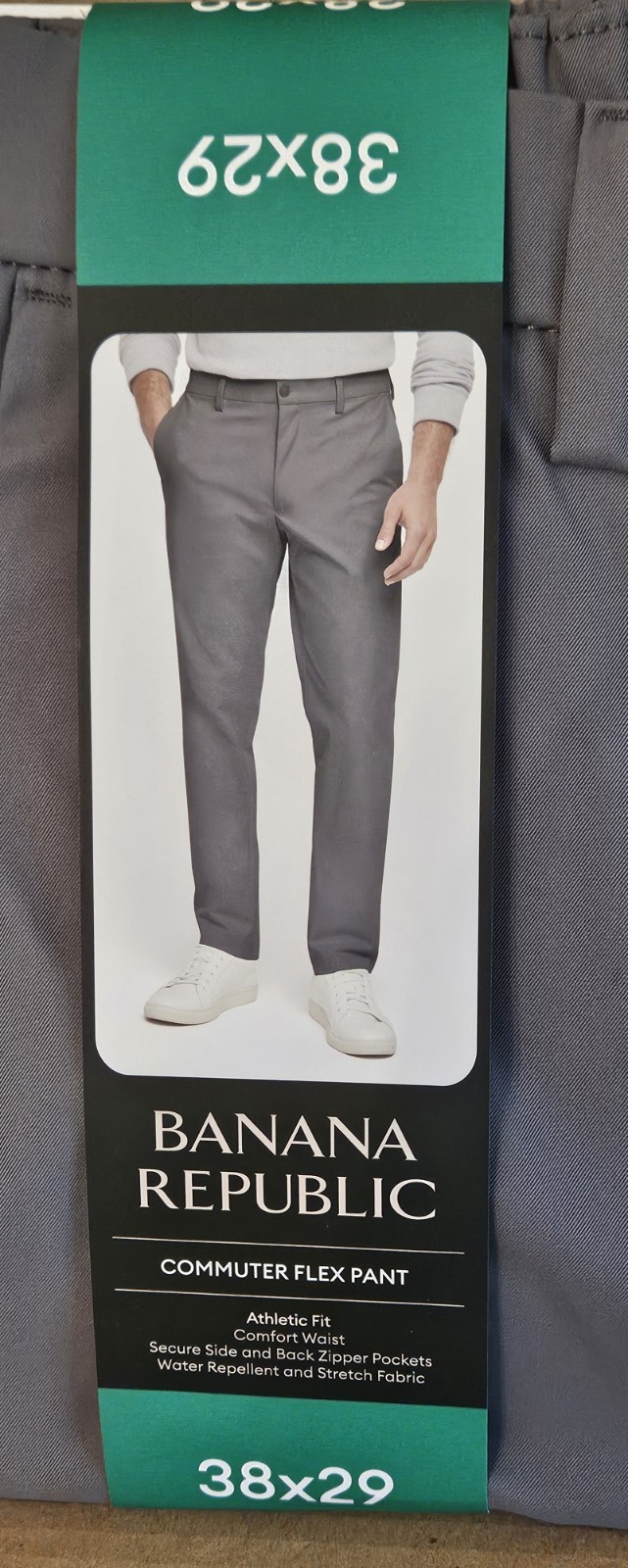 как выглядит Banana Republic Commuter Flex Pants Mens 38x29 Stretch Water Repellent Gray фото