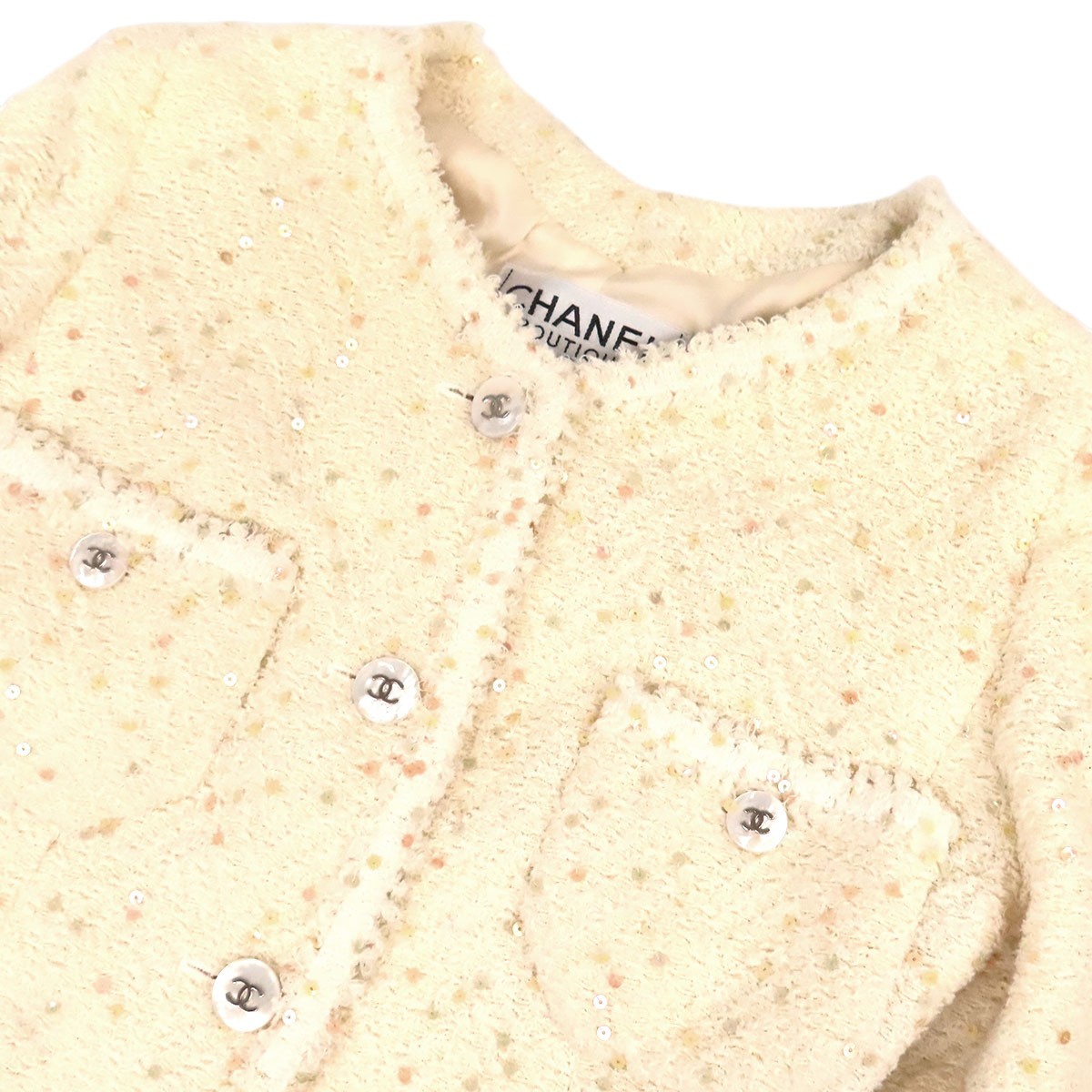 CHANEL COCO Mark Sequin Tweed Collarless Jacket Women off white A