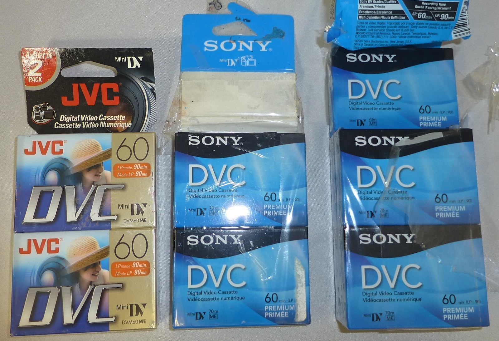 Lot of 7 Sony Sealed DVC 60 Minute Video Cassette Tapes 2 JVC Sealed DVC Tapes