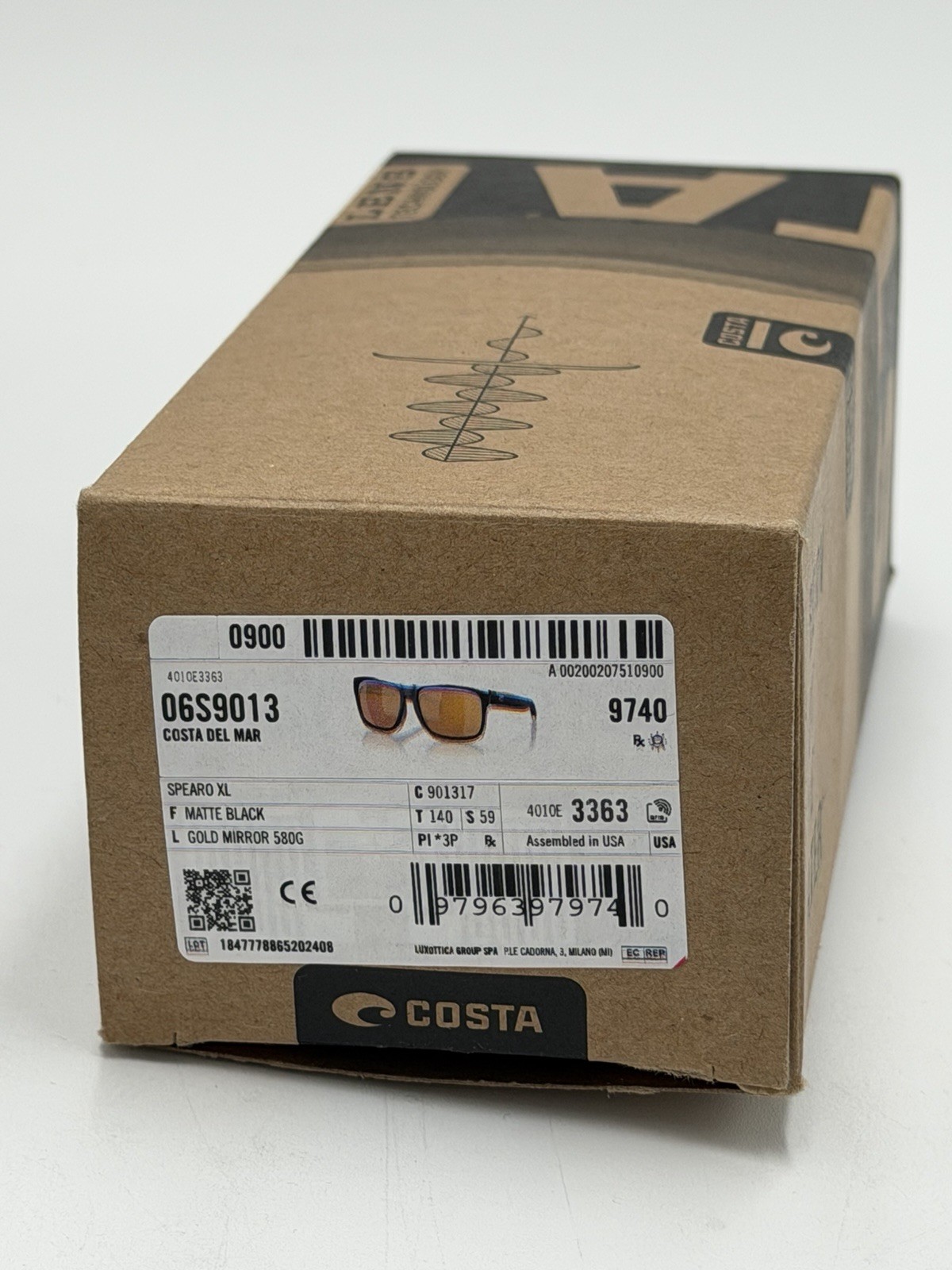 Costa Del Mar Spearo XL Matte Black / Gold Mirror Polarized Glass 580G - NEW