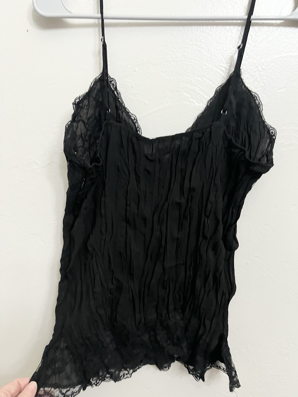 как выглядит VTG Y2k Babydoll Top Black Crinkle Whimsigoth Lace Fairy Grunge Size Large Tank фото