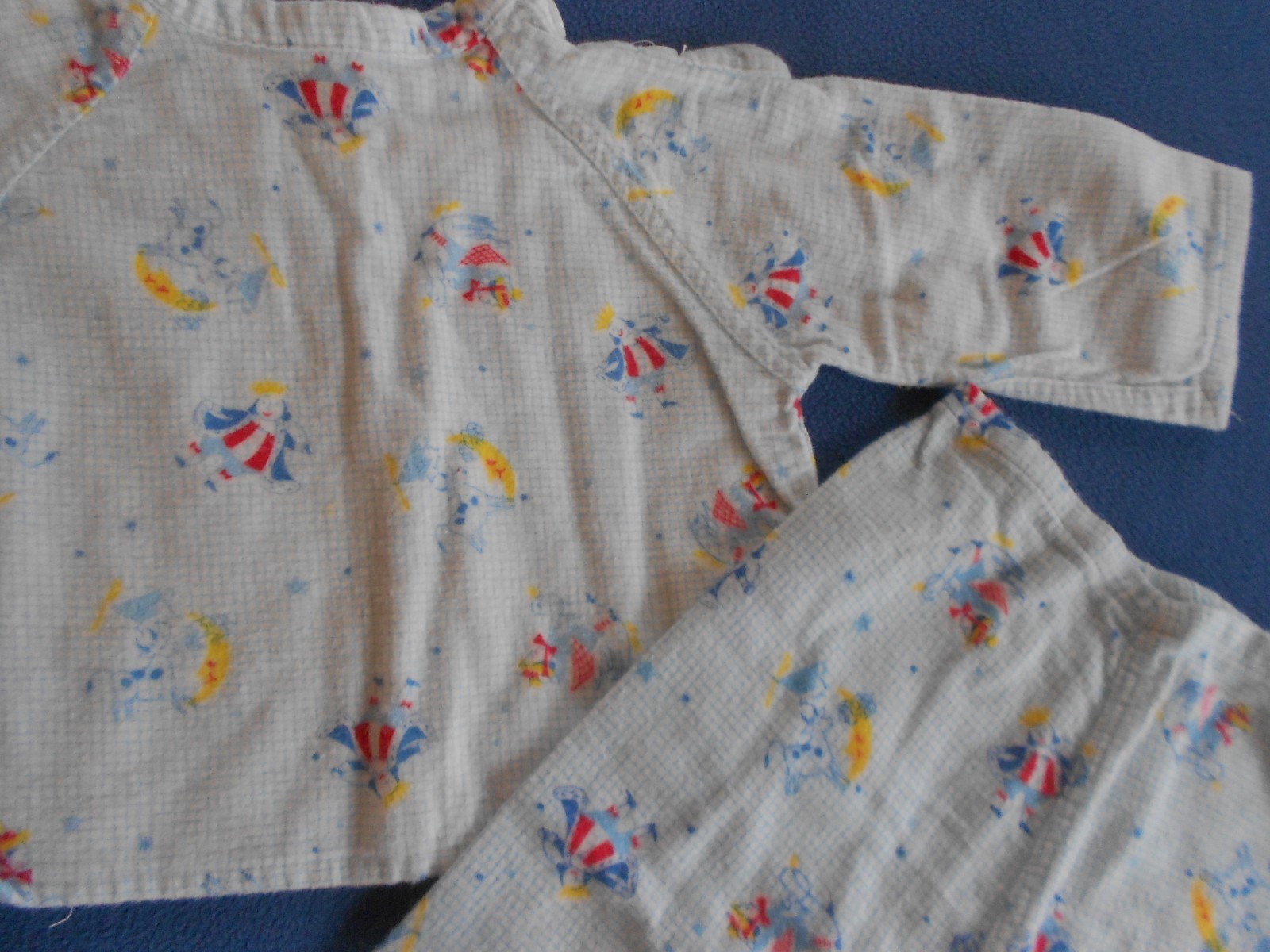 2 VTG Baby 1950s Childs Pajama Sets Nursery Rhyme Print Flannel, Mother Goose