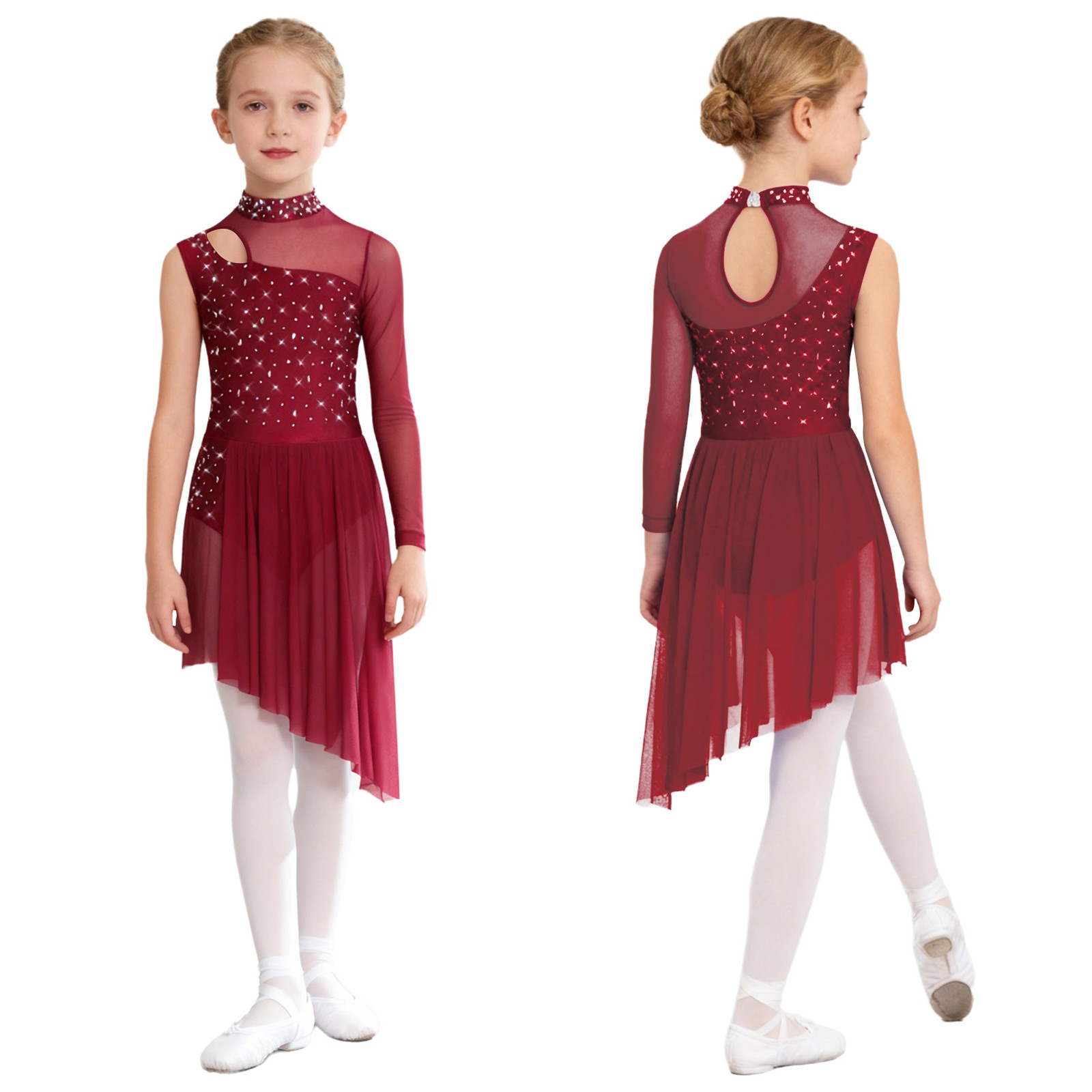 как выглядит Kids Girls Leotard Cutout Dancewear Side Split Dresses Costume Dress Patchwork фото
