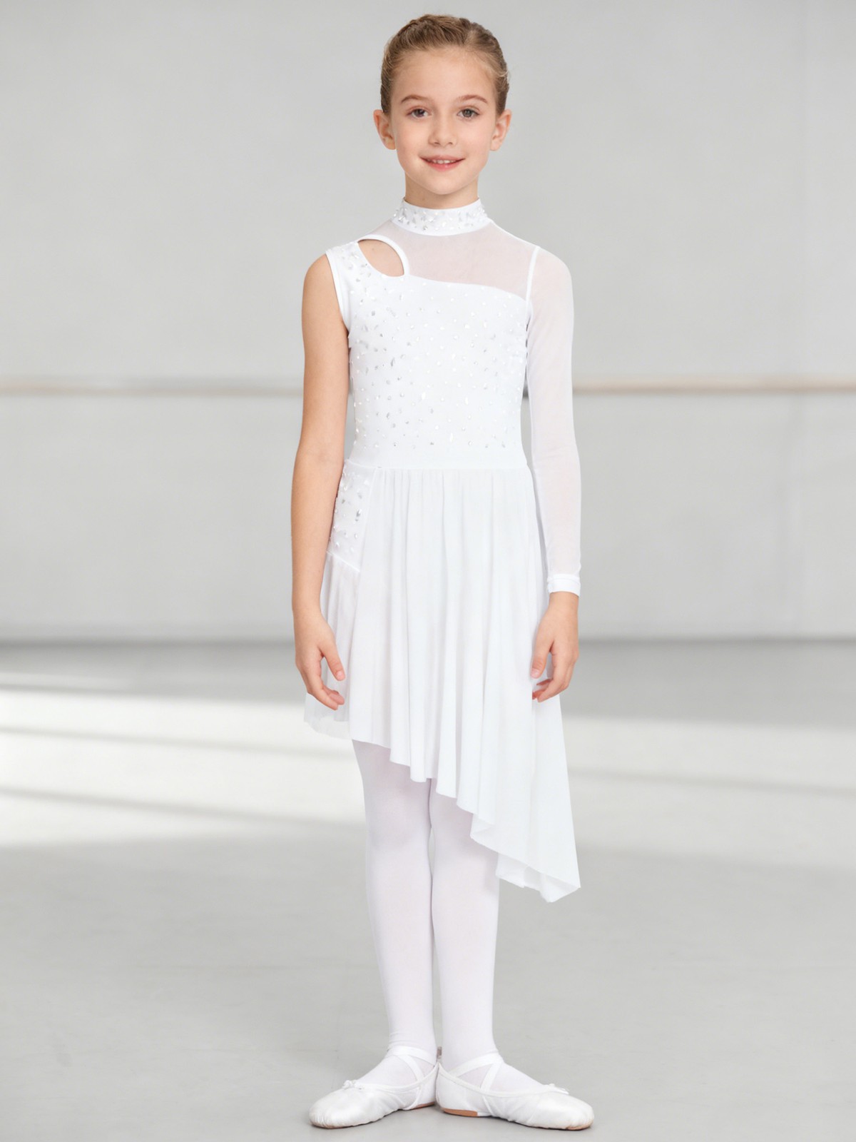 как выглядит Kids Girls Leotard Cutout Dancewear Side Split Dresses Costume Dress Patchwork фото