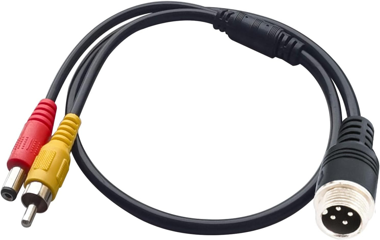 4-Pin Aviation to RCA Adapter Cable - M12 to AV DC Connector Wire for Car Backup