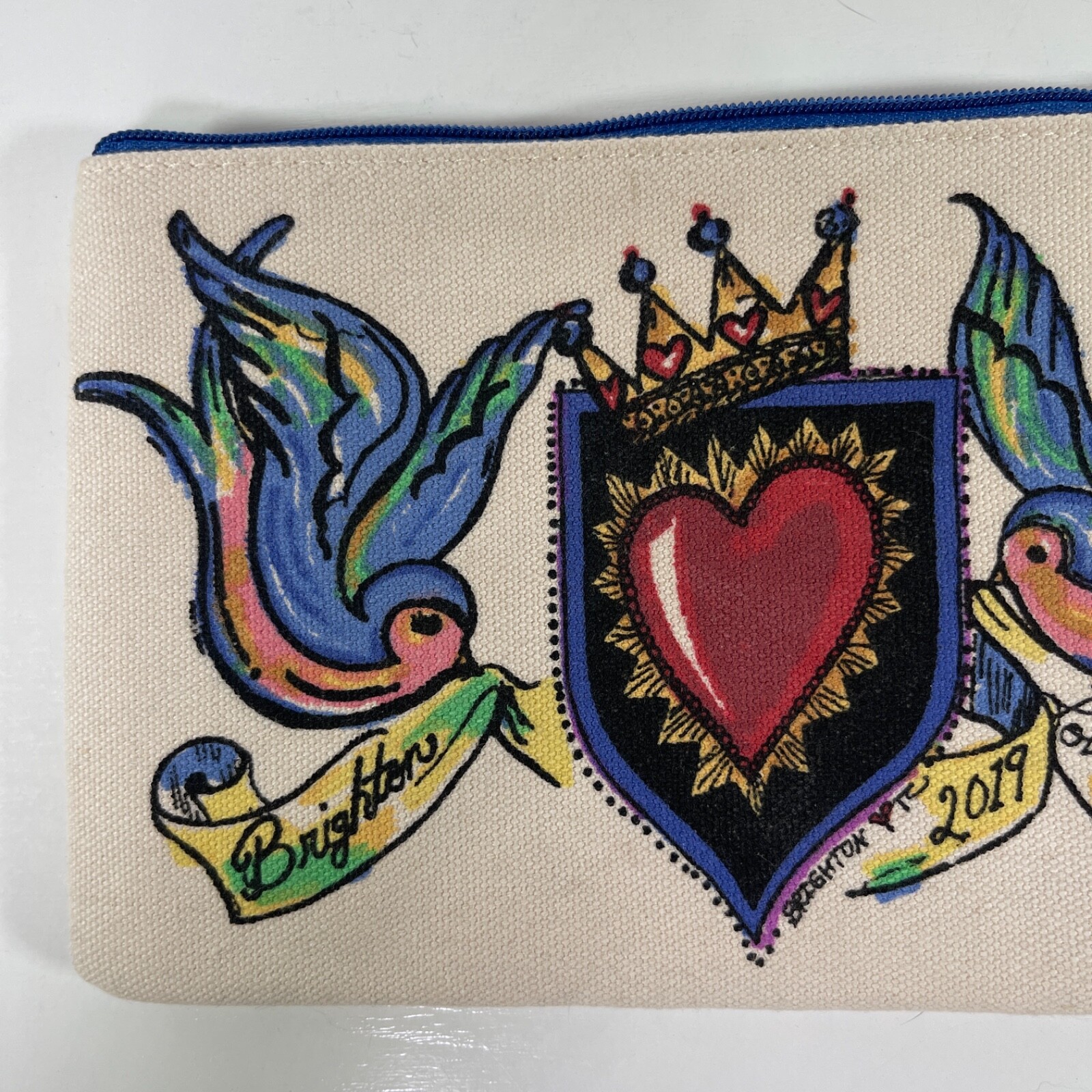 Brighton 2019 Love Of Art Birds Heart Crown Zip Top Canvas Cosmetic Bag