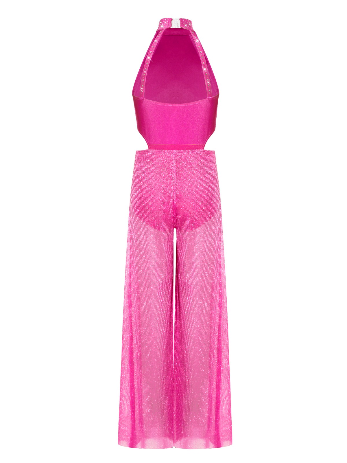 Kids Girls Bodysuit Unitard Dancewear Stage Jumpsuit Back Cutout Wide-Leg Mesh
