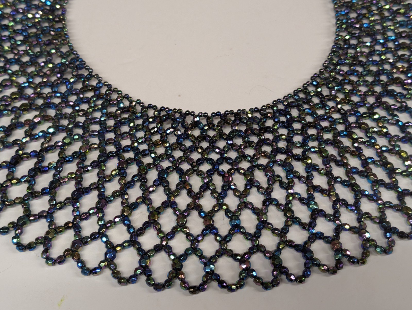 Vintage Iridescent Bead Beaded Woven Collar Bib Necklace