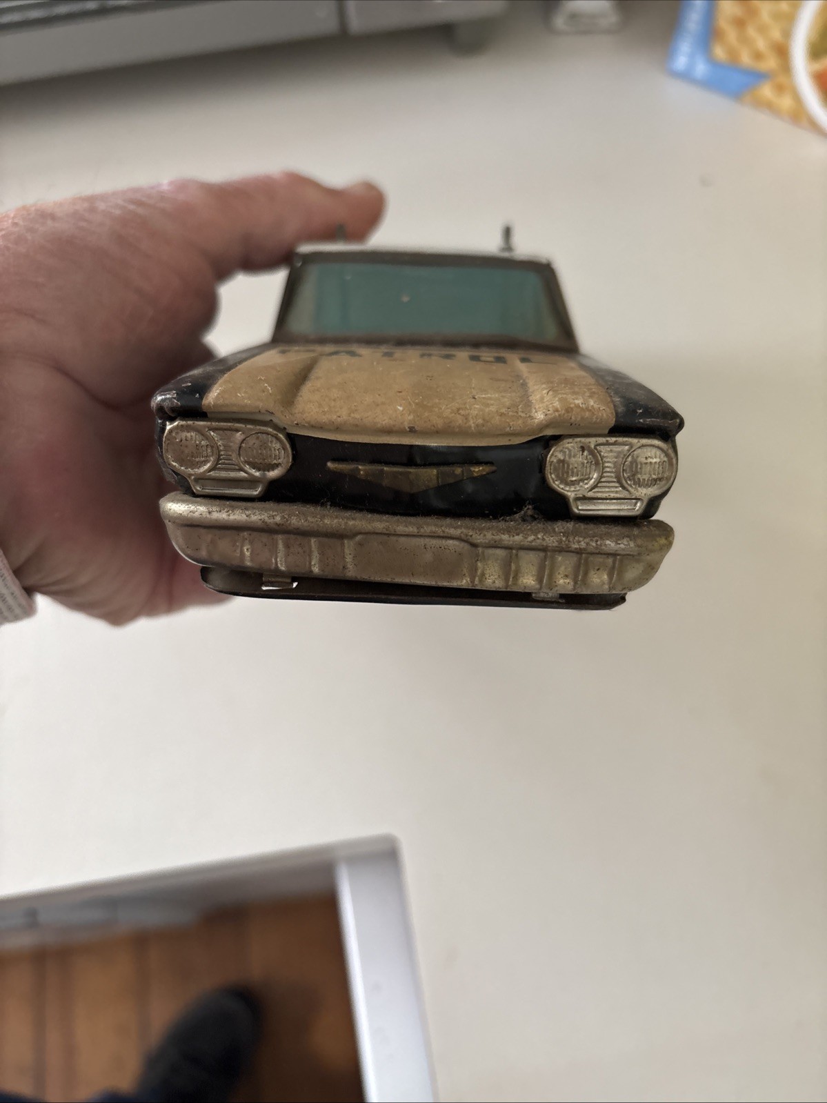 Vintage Tin Toy Police Car Patrol Friction Corvair Ichiko Japan For Repair