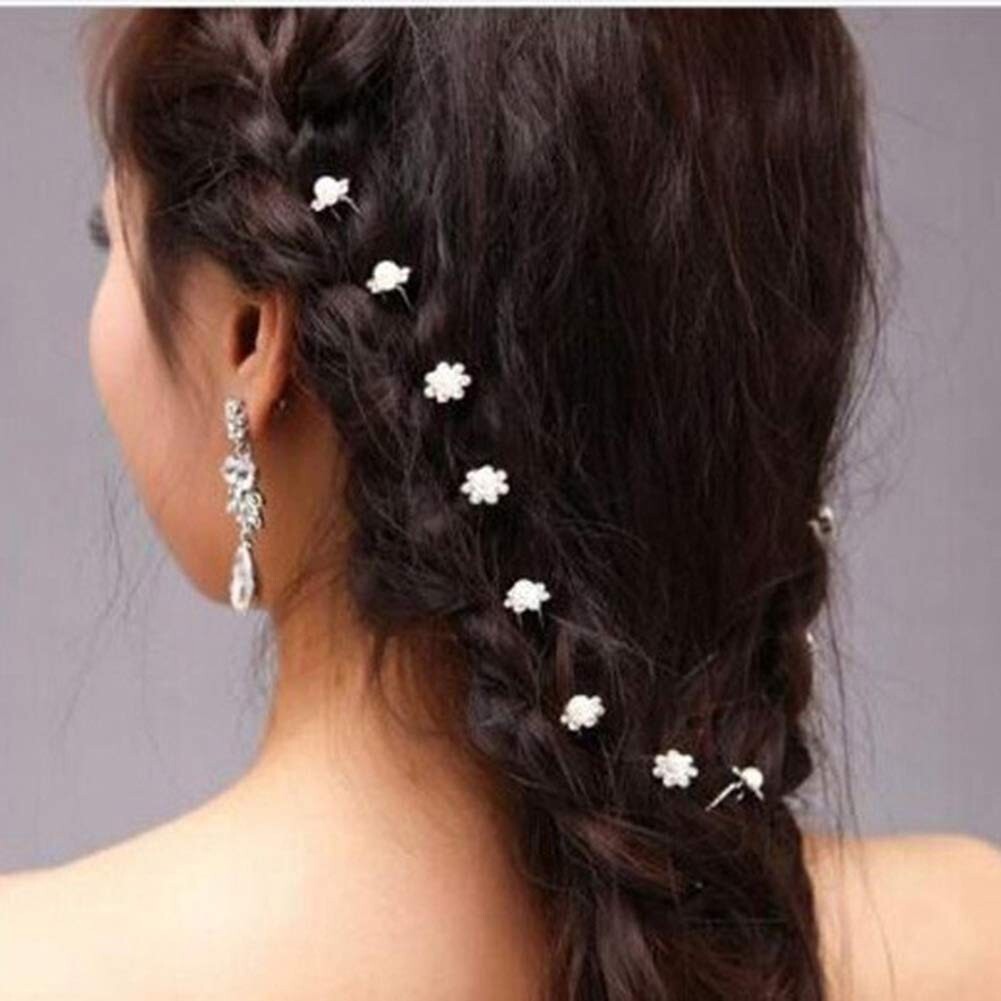 40 PIECES LOT OF WEDDING COCKTAIL HAIR PINS U-PIN PEARL SILVER FLOWER CRYSTALS