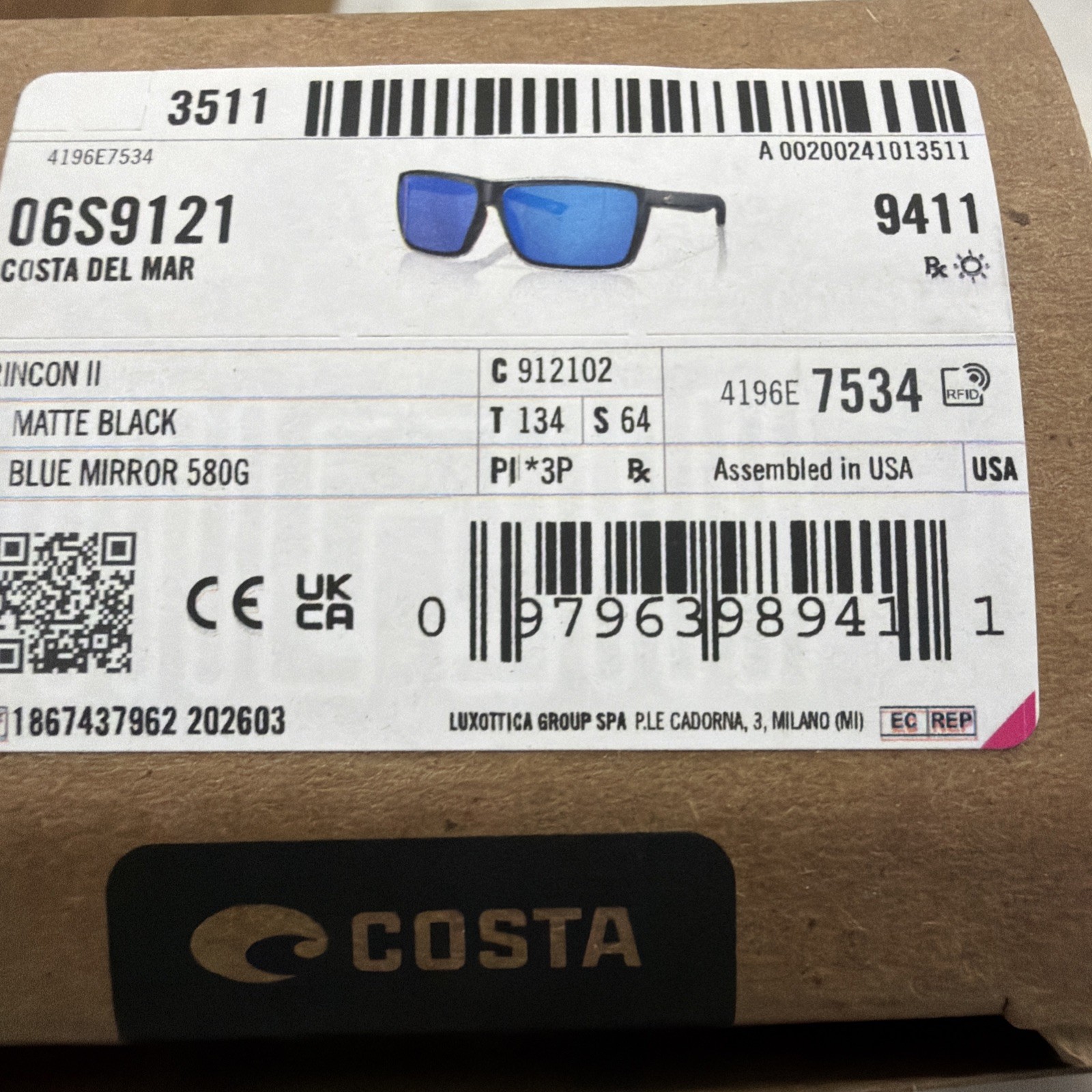 BRAND NEW Costa Del Mar RINCON II 2 Matte Black / Blue Polarized Glass 580G