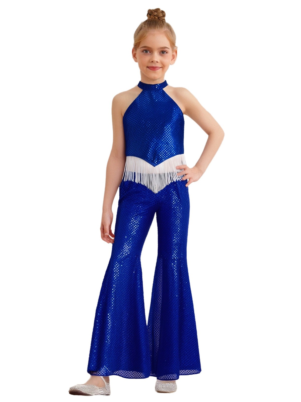 Kids Girls Dancewear 2-piece Outfits Halter Dance Set Disco Jazz Performance
