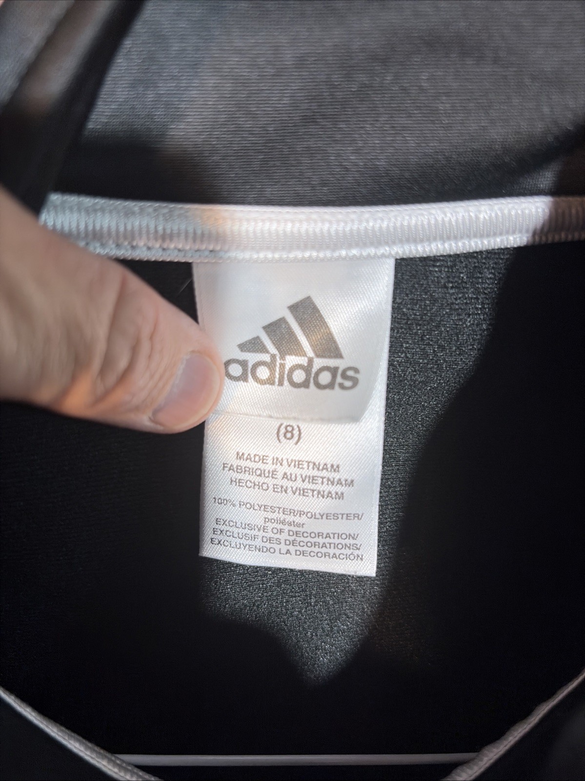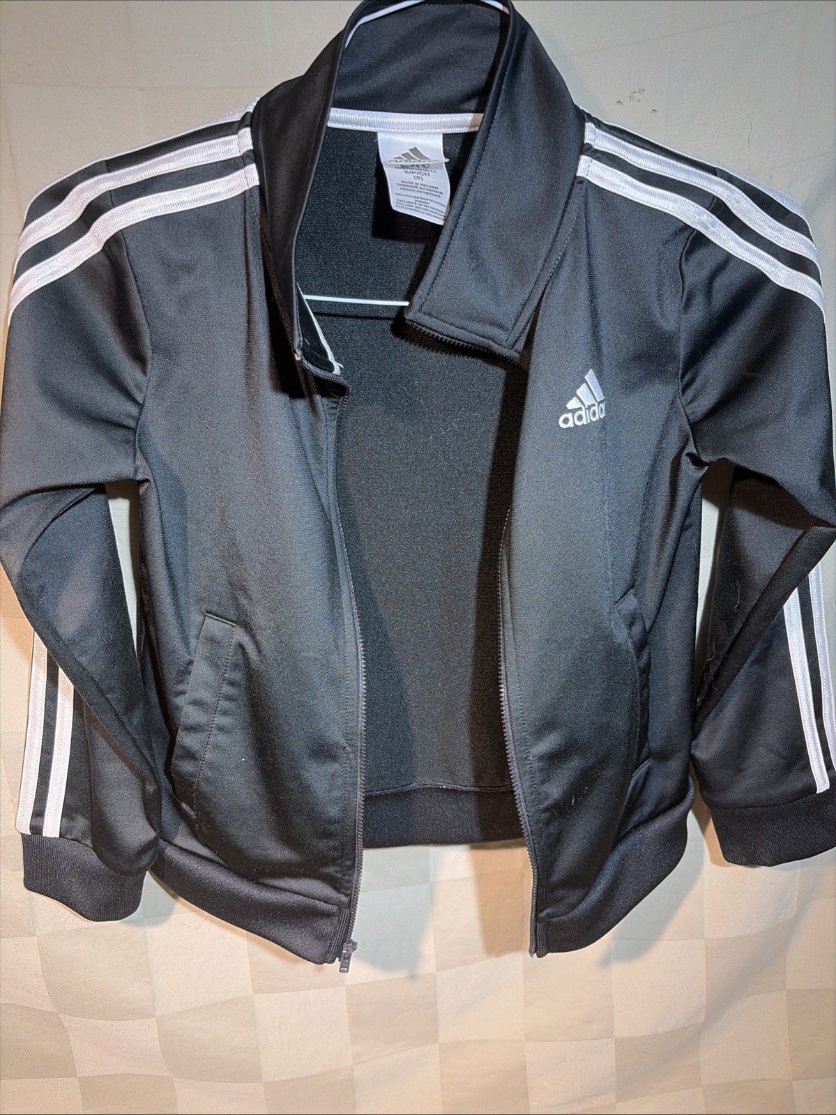 Adidas Jacket Youth Small 8 Black Full Zip Track 3 Stripes Athletic Warm Up Top