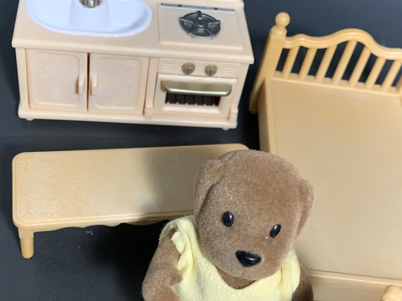 Calico Critters Sylvanian Kitchen Party Table Chairs Baby Car Seat Stove Lot