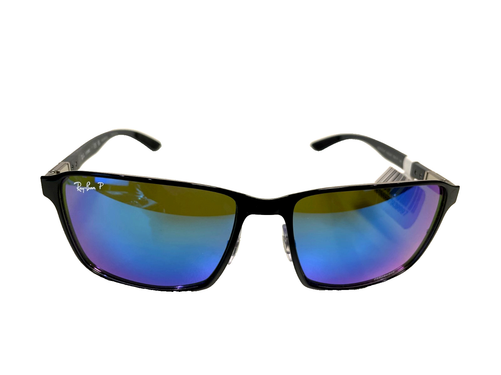 RAY BAN RB3721CH 9144A1 Black Blue Mirror Polarized Men's 59/17/145mm Sunglasses