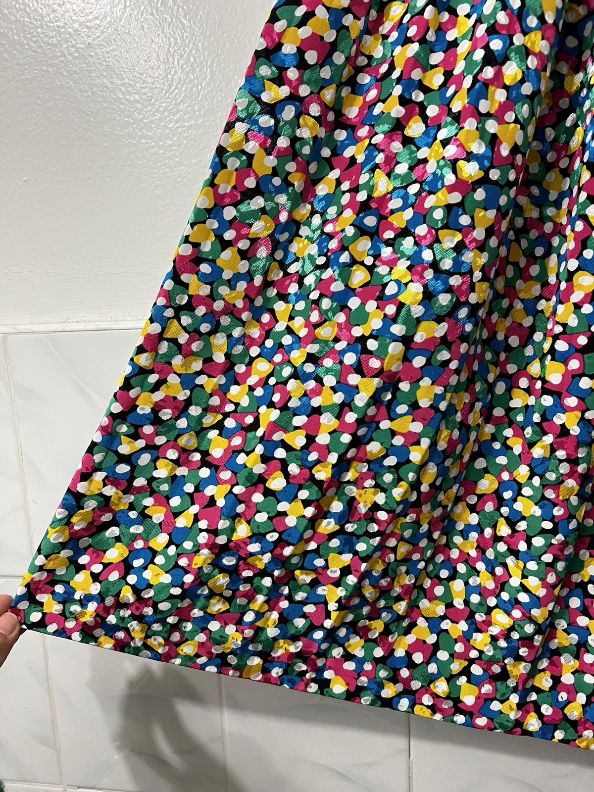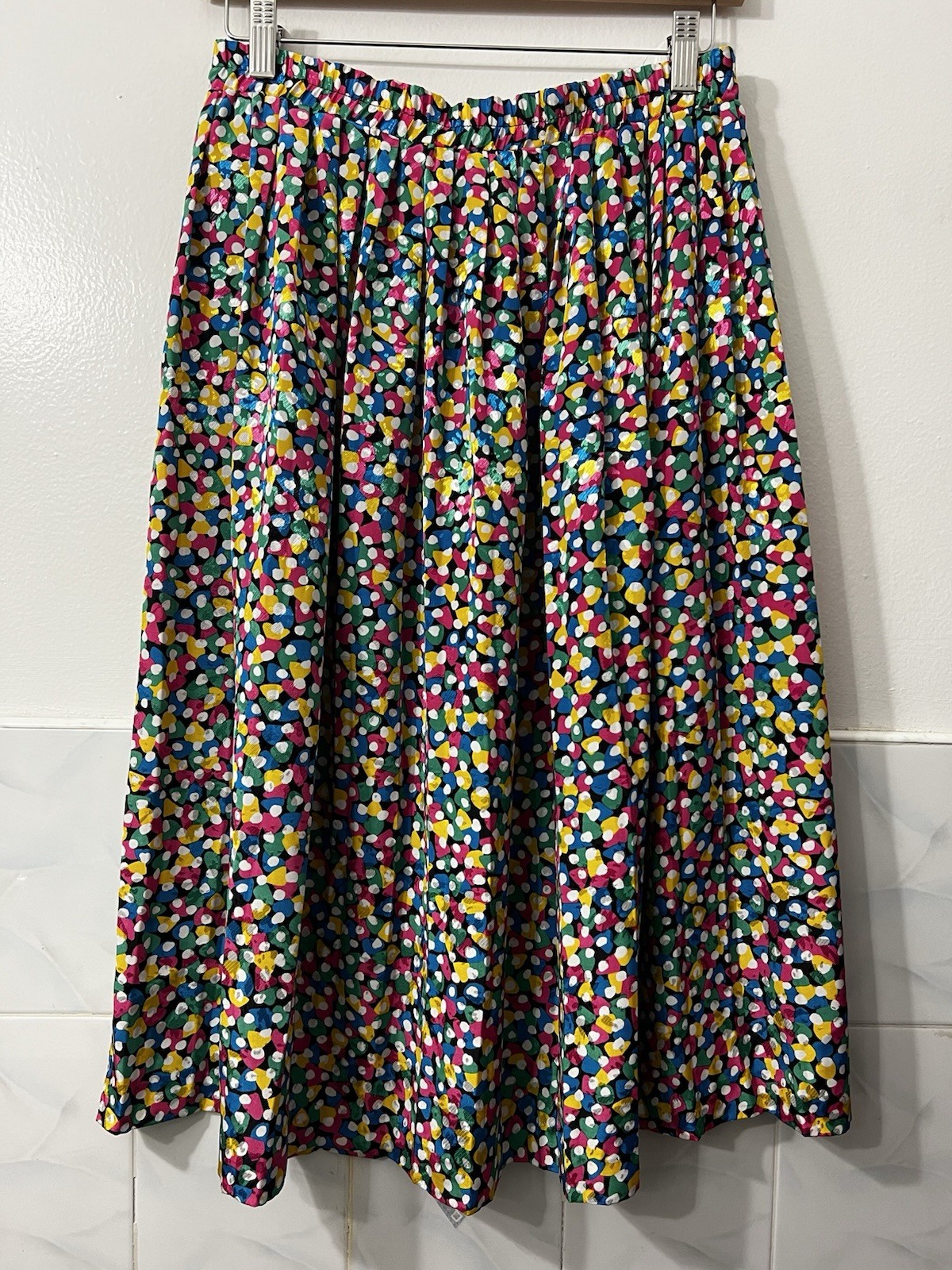 Vtg Pleated Midi Skirt Petite M Confetti Kidcore Whimsical Geometric Festival