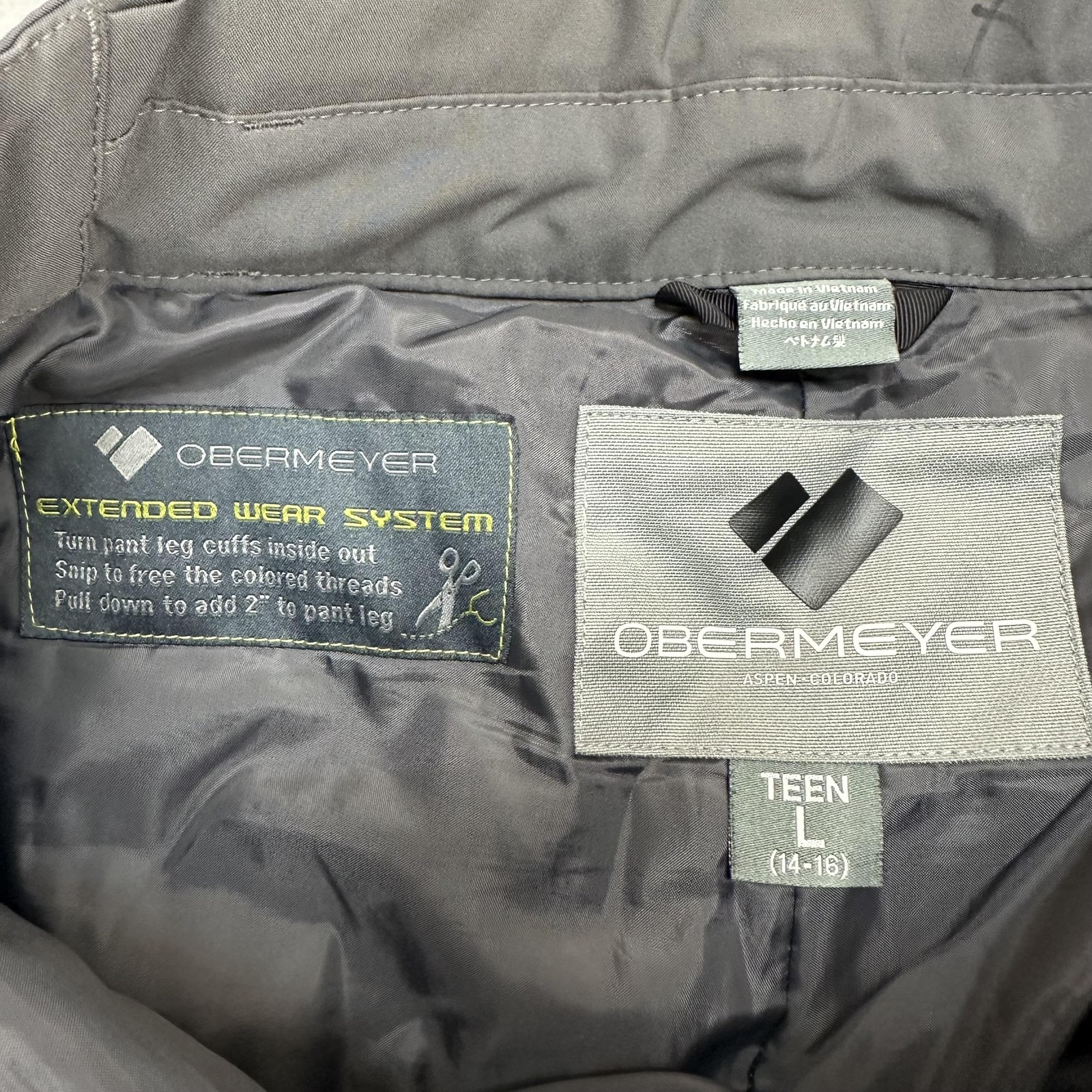 как выглядит Obermeyer Snow Pants Youth Large 14-16 Gray Insulated Ski Adjustable Zip Pockets фото