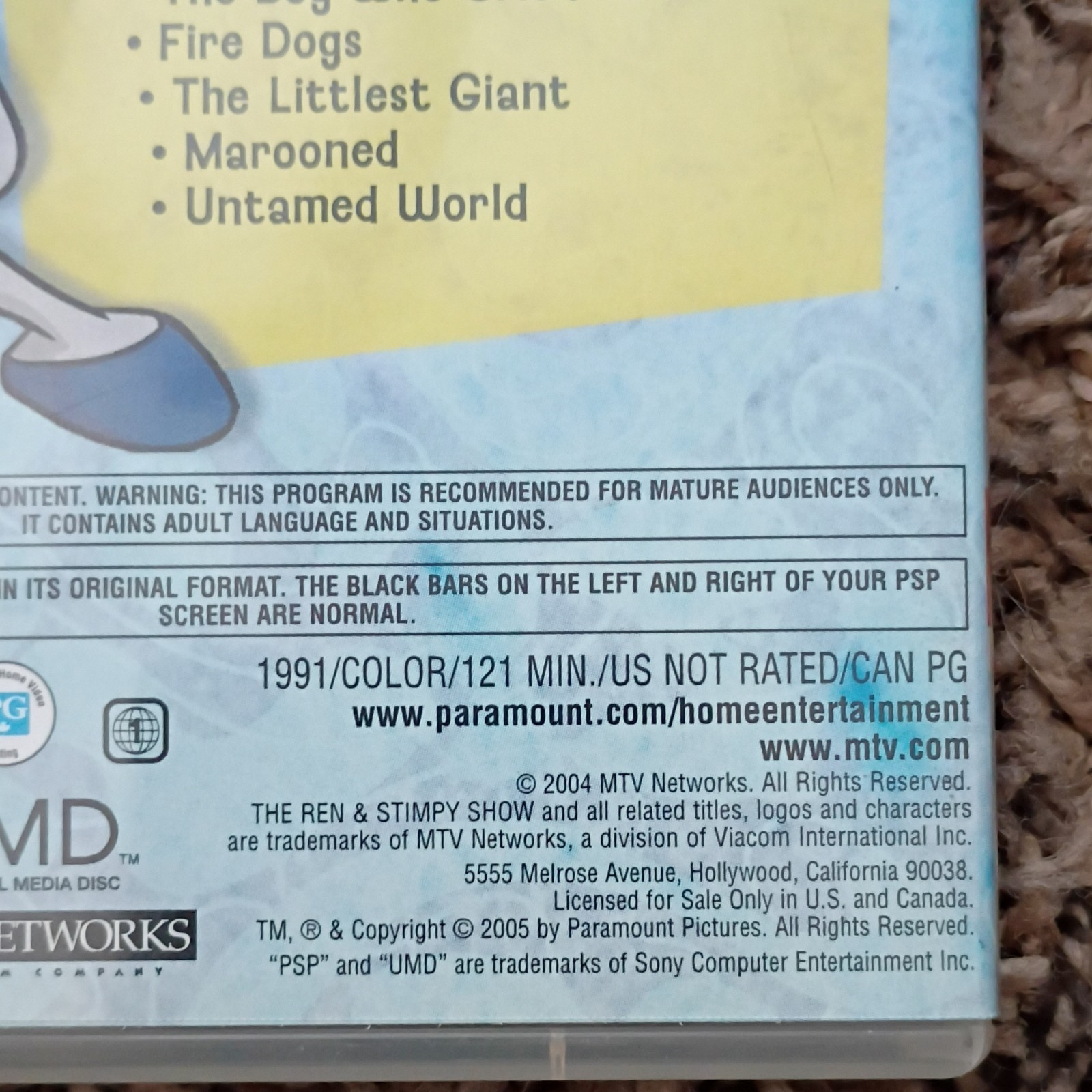 The Ren Stimpy Show Volume 1 UMD Video PSP Animation Comedy NR 1991