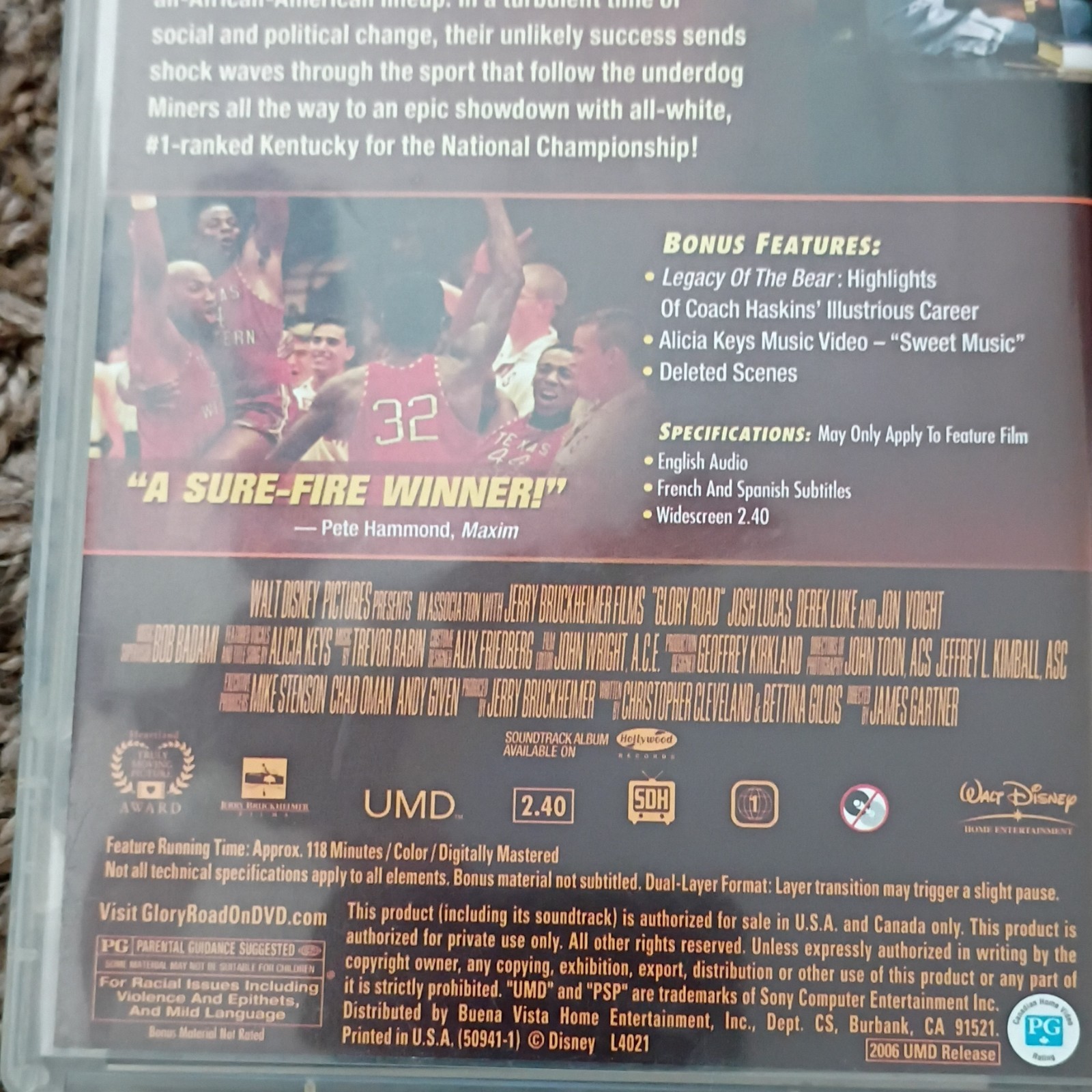 Glory Road Josh Lucas UMD Video PSP Sports Docudrama PG 2006