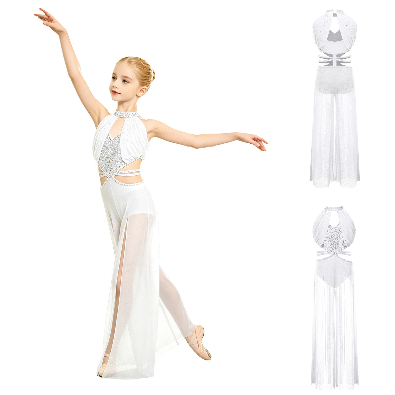 как выглядит Kids Girls Jumpsuit Bodice Dancewear Sleeveless Bodysuit Sequin Lyrical Cutout фото