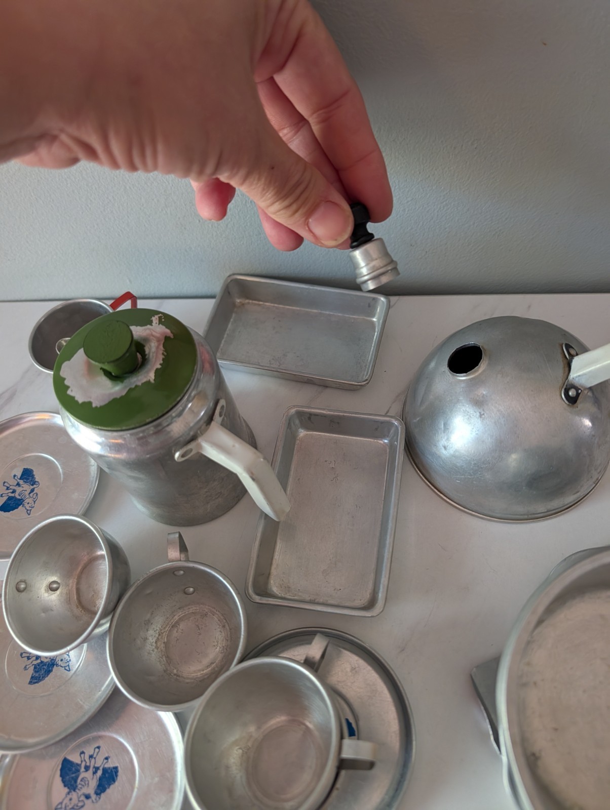 как выглядит Vintage Aluminum Kids Toy Dishes Cookware фото