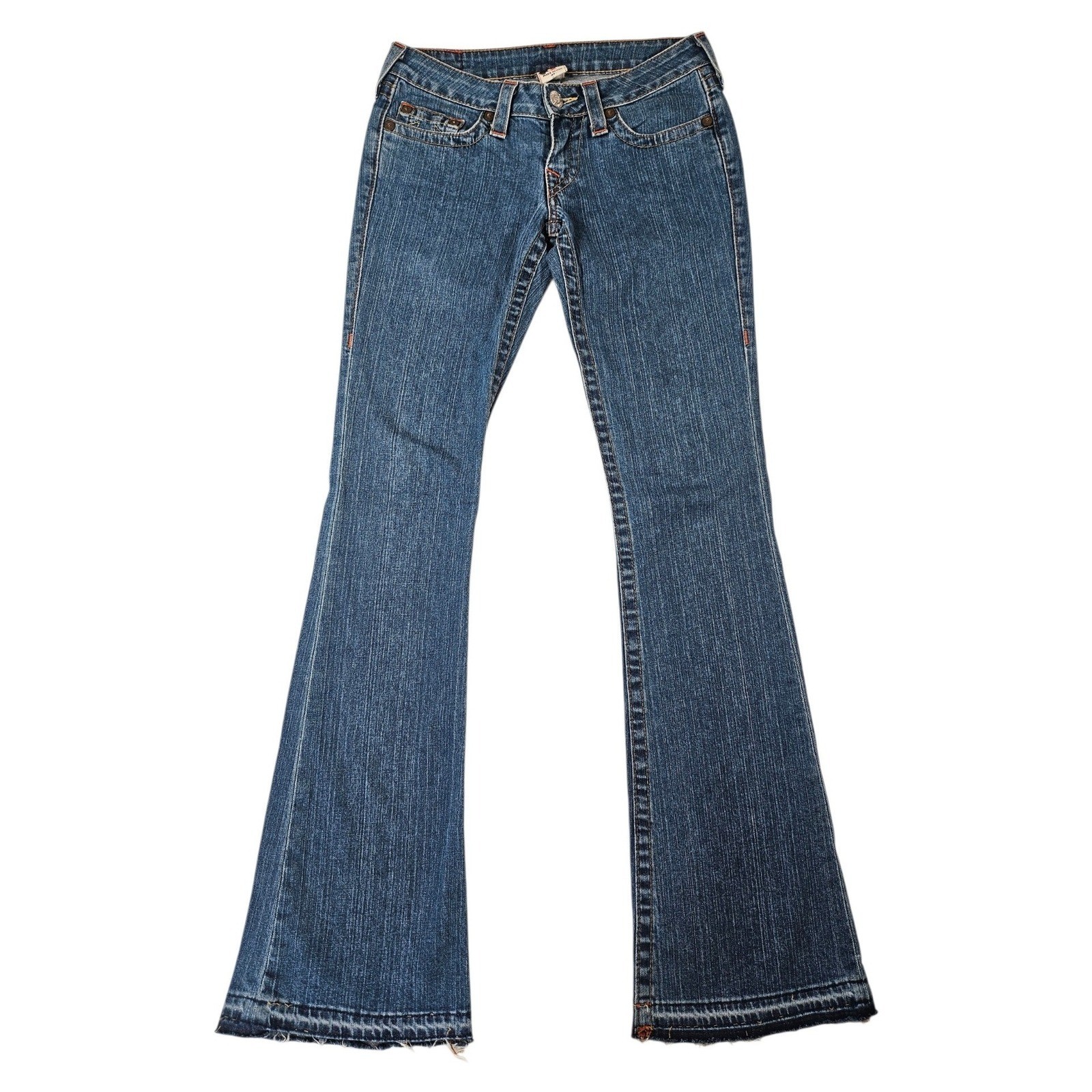 True Religion Bobby Low Rise Flare Jeans Y2K Grunge Raw Hem USA Size 27 VTG