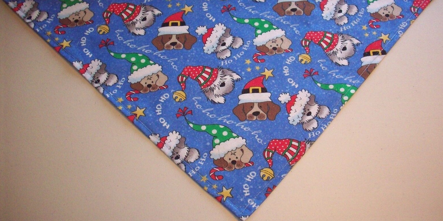 Dog Bandana/Scarf cotton Tie/Slide On Christmas, Blue, Dogs, Hats, xS, S, M, L