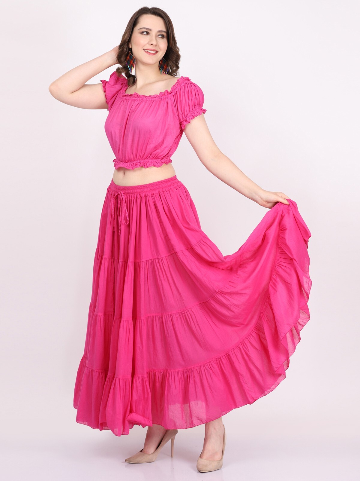 как выглядит Women Casual 25 Yard 4 Tiered/Bohemian/Flamenco/Gypsy Belly Dancer Cotton Skirts фото