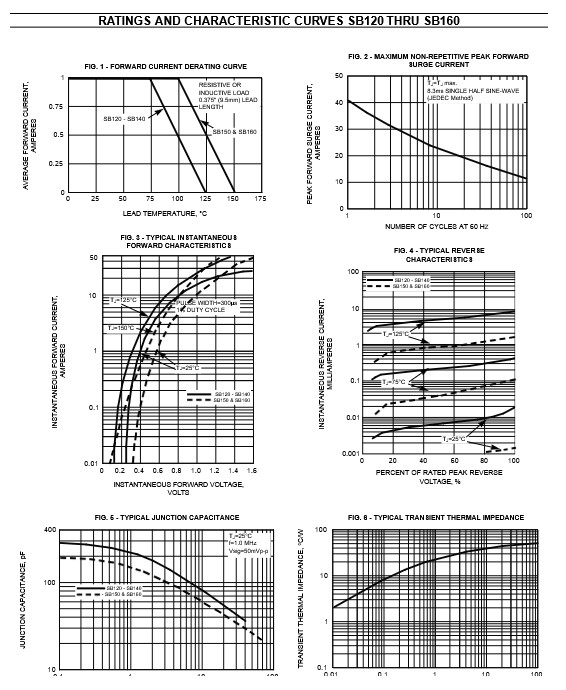 QTY 100 SB160/4 GENERAL SEMI DO-204AL 60V 1A SCHOTTKY BARRIER DIODES SB160