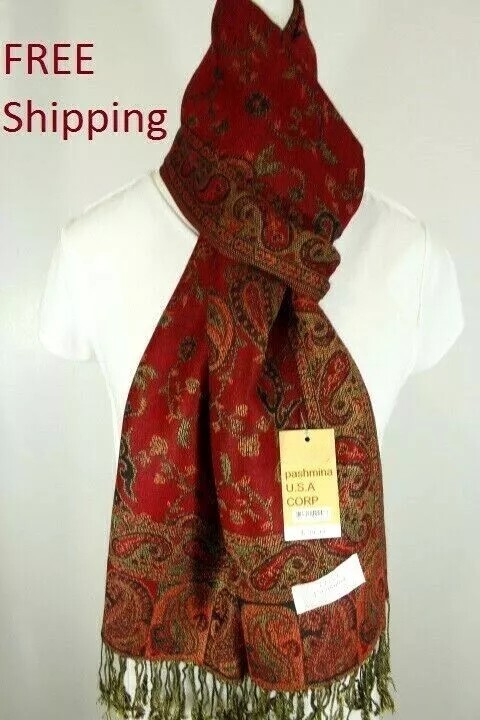как выглядит Pashmina Scarf Shawl Wrap-Paisley Black Red;Silk Cashmere.Soft Trendy фото